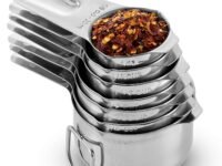 304 Stainless Steel Stackable Measuring Cup Set with Engraved Measurement Marking for Cooking and Baking (Set of 7)