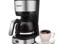 AGARO Royal 4 Big Cups Drip Coffee Maker, 600 Ml Borosilicate Glass Carafe Jar, 750W, Water tank with Level Indicator, Brewer Machine with Cone Filter, Auto Shut Off, Stainless Steel Body, Black