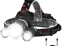 Rantizon Headlamp Rechargeable Headlight With 3 Lights 4 Modes, 6000 Lumen Super Bright Led Lamp, Hands-Free Flashlight Headlamp For Running, Camping, Fishing, Cycling, Hiking, Waterproof