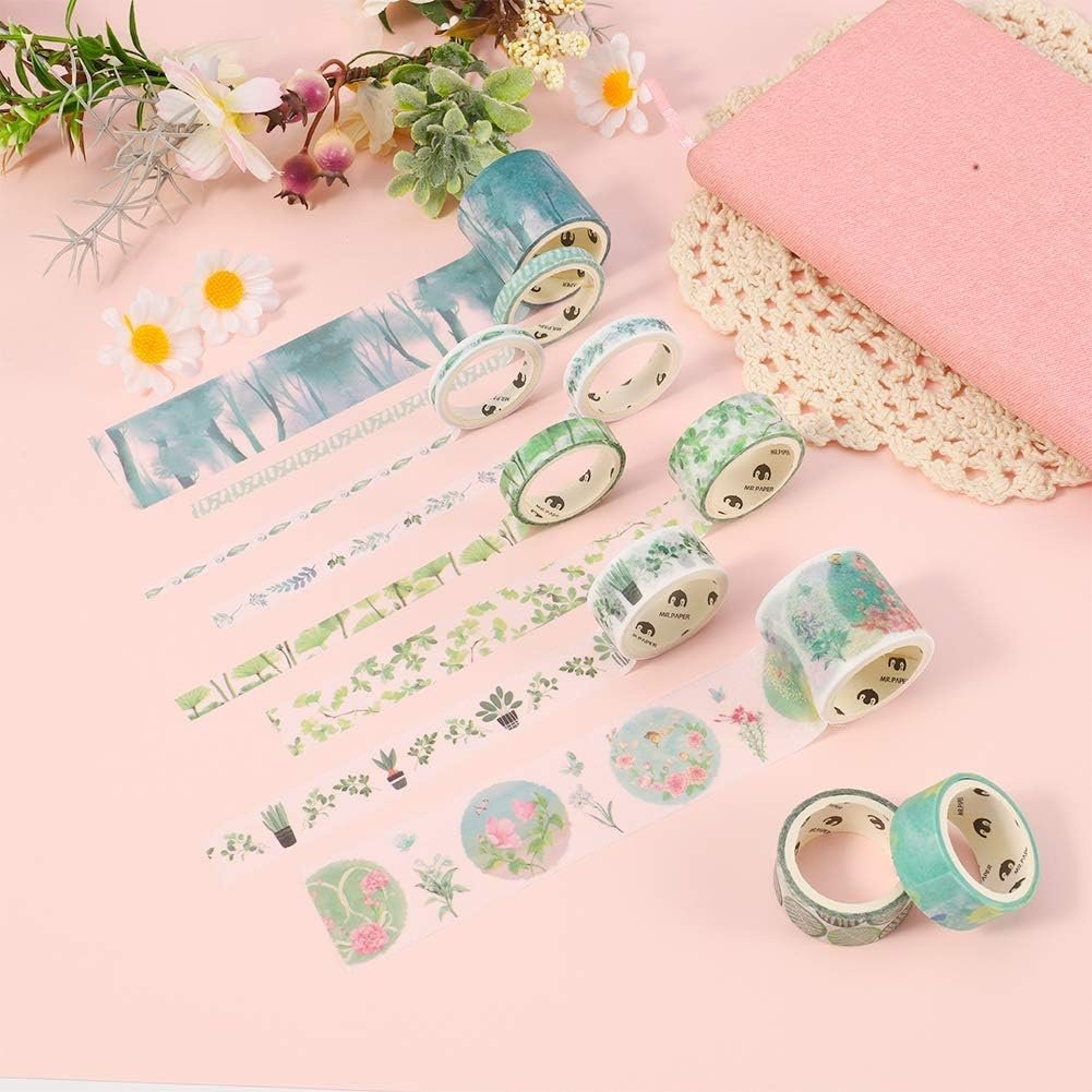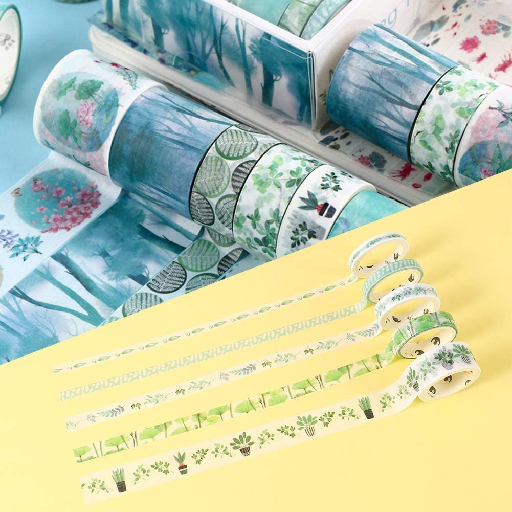 10 Rolls Washi Tape Set, Scrapbook Printing Masking Self Adhesive Tape Decorative Craft Supplies (Green)
