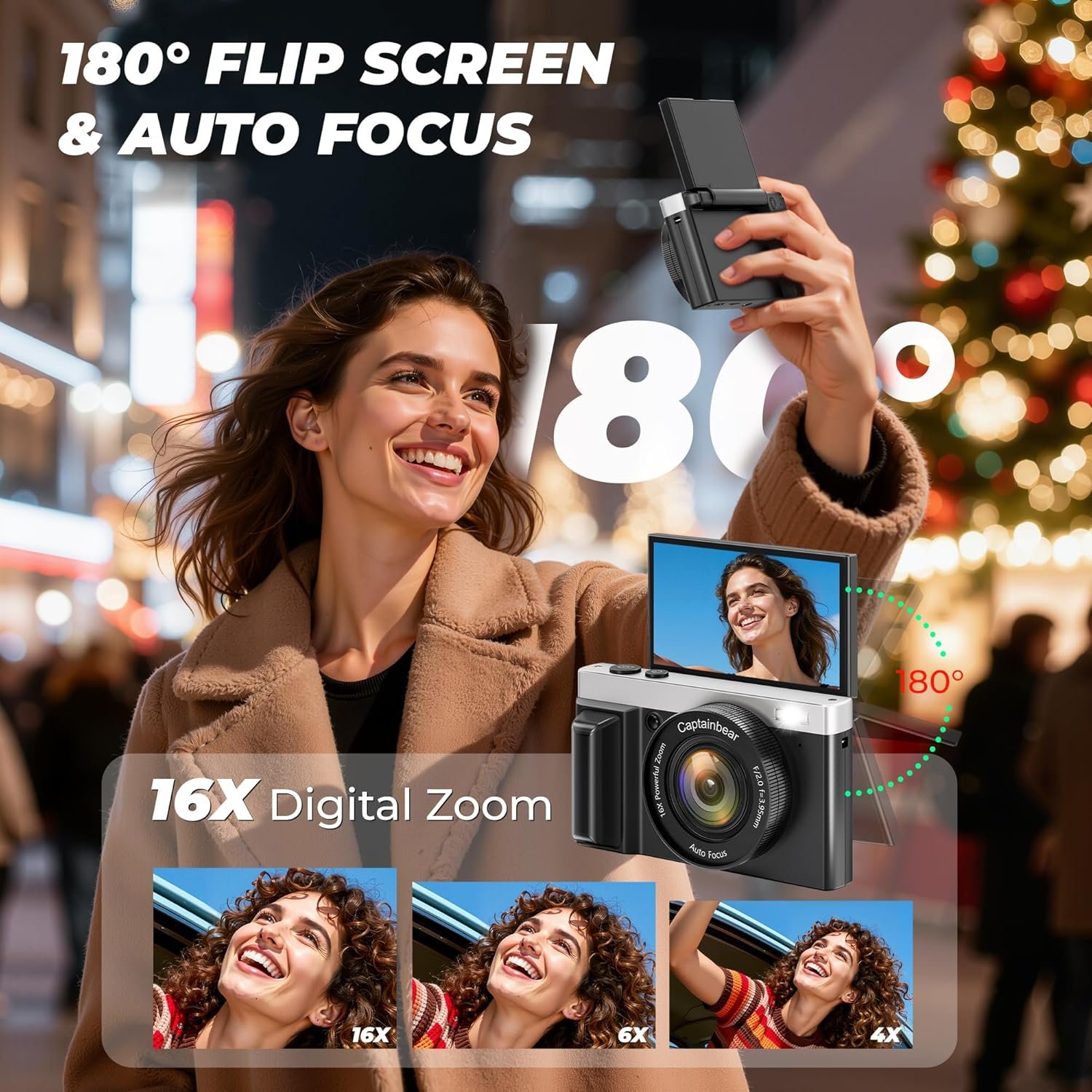 4K Digital Camera,64MP Cameras for Photography with 16X Digital Zoom, AutoFocus Vlogging Camera for YouTube, 3″ 180°Flip Screen Compact Travel Camera, Anti-Shake 4K Video Cameras