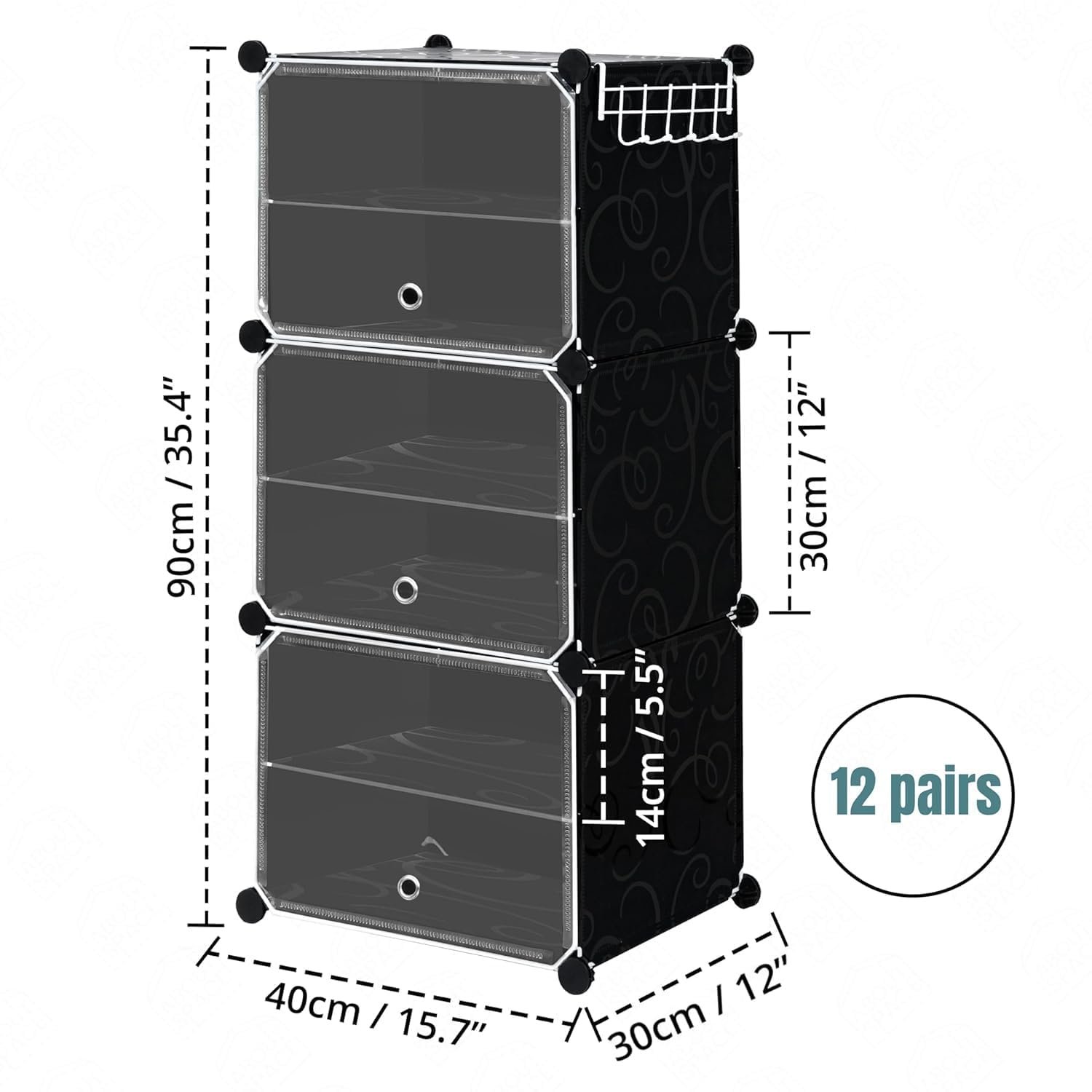 ABOUT SPACE Shoe Rack for Home with Door – 12 Pair DIY Slipper Stand with Hanger, 3 Cube Expandable Shelves Closed Shoes Rack for Home Men, Women Heels Boots Flip-Flops (L 40 x B 30 x H 90 cm)-Black