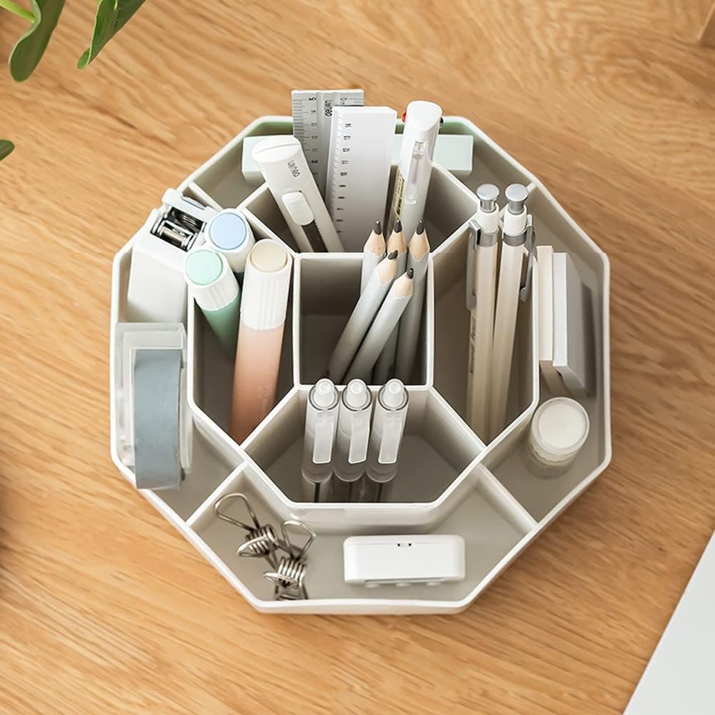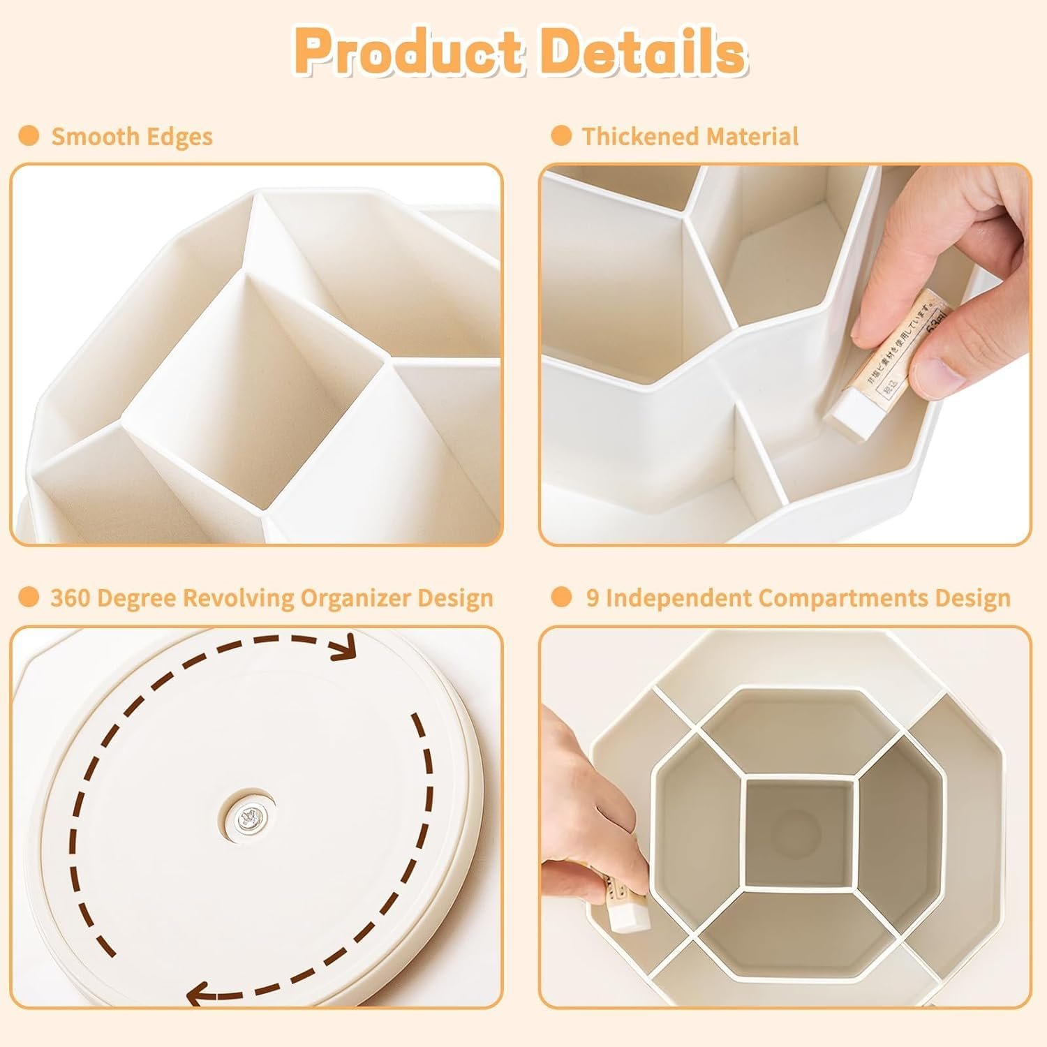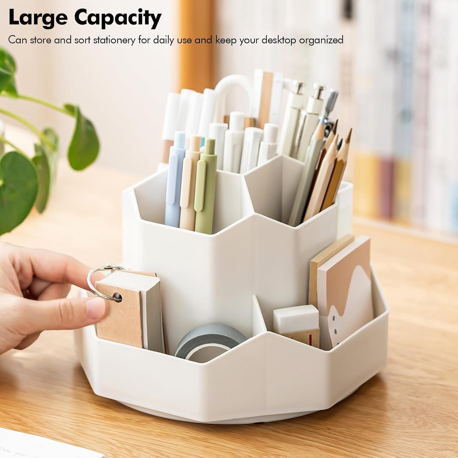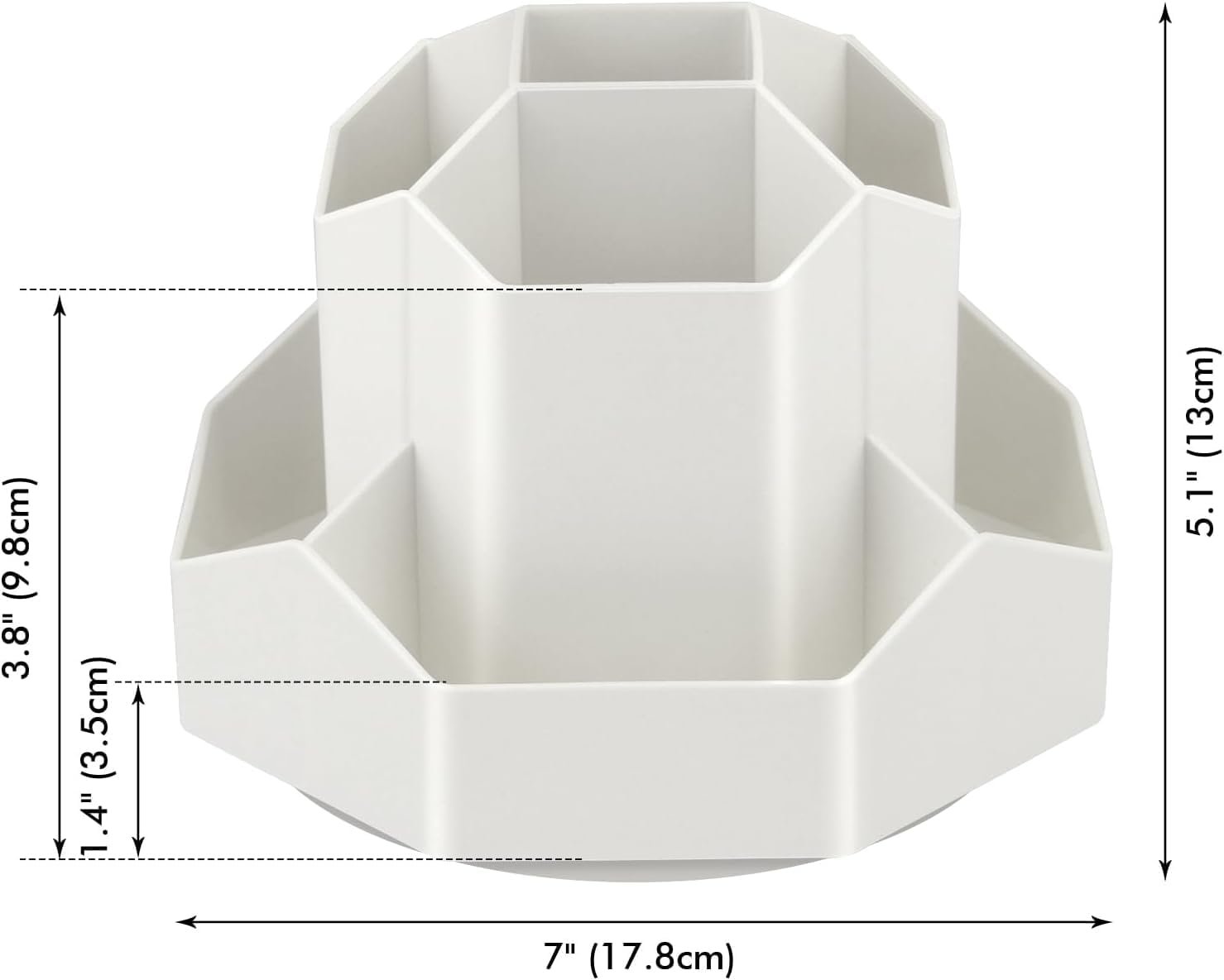 AccuPrints 360-Degree Rotating Desk Organizer,Size 13 x 18 cm |Pen Pencil Holder with 9 Slot Desktop Organizer for Office Supplies Stationery Staplers Clips – White