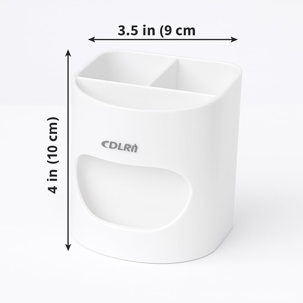 AccuPrints Pen & Pencil Holders and Stationery Organiser Holder I 3 Compartment Plastic Case Holder I Multi-Functional Storage & Display Stand for Home, Office Table Accessories (White Smile) (A5P2)