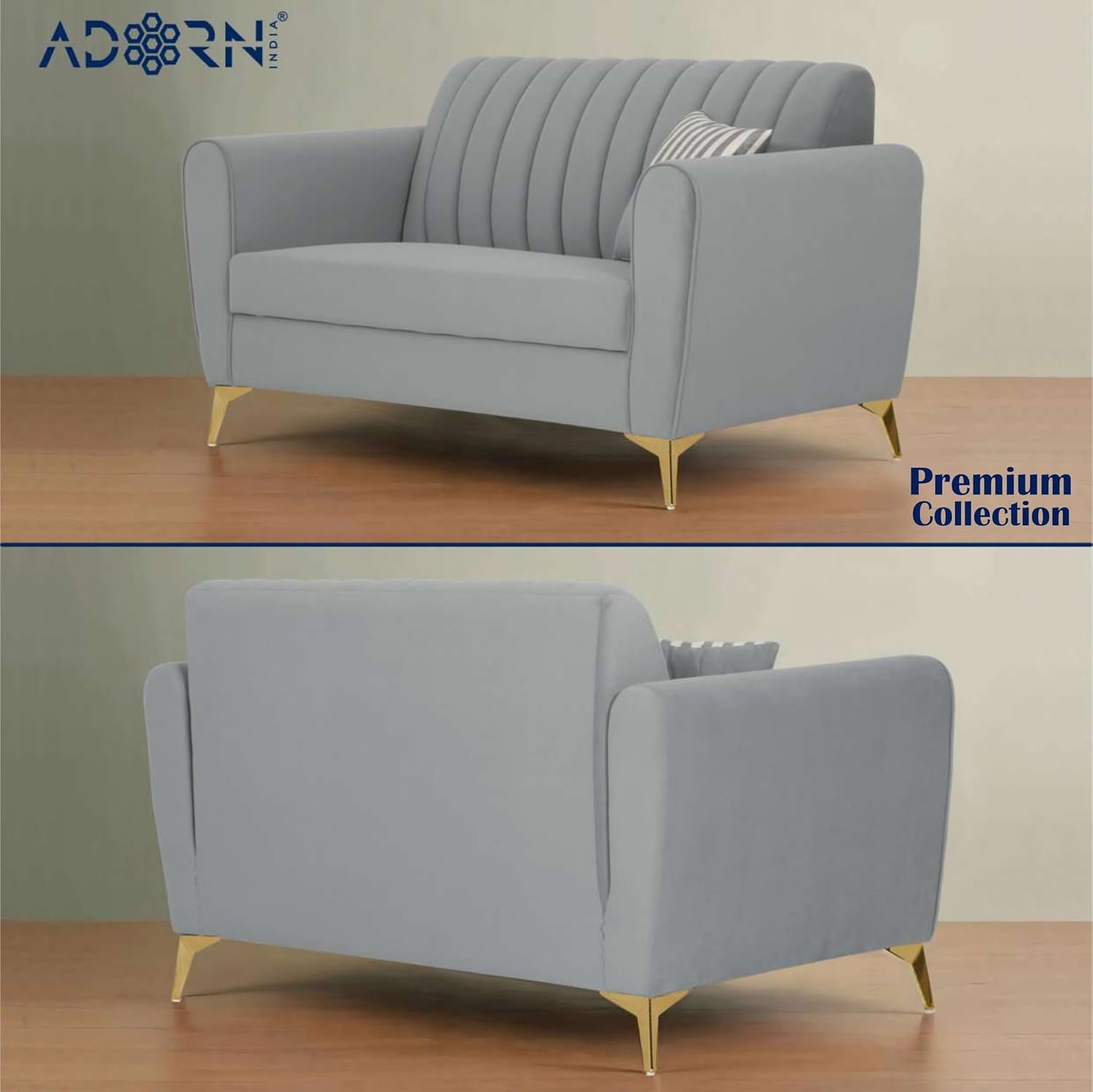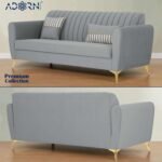 Be the first to review “Adorn India Premium Luster 3+2 Sofa Set | Velvet Suede Fabric | 3-Year Warranty | Color Grey with Golden Legs & Striped Pattern Cushion”