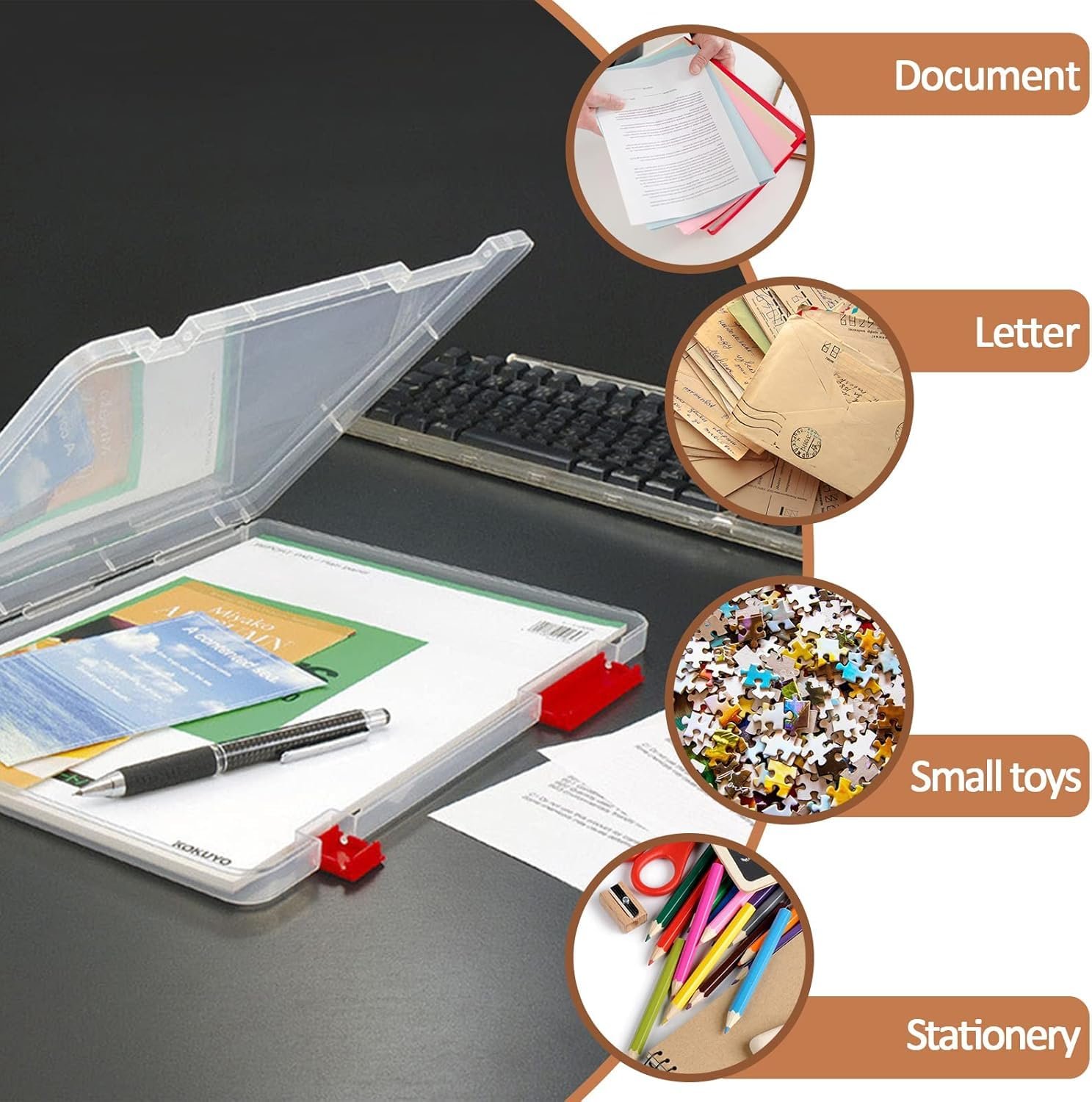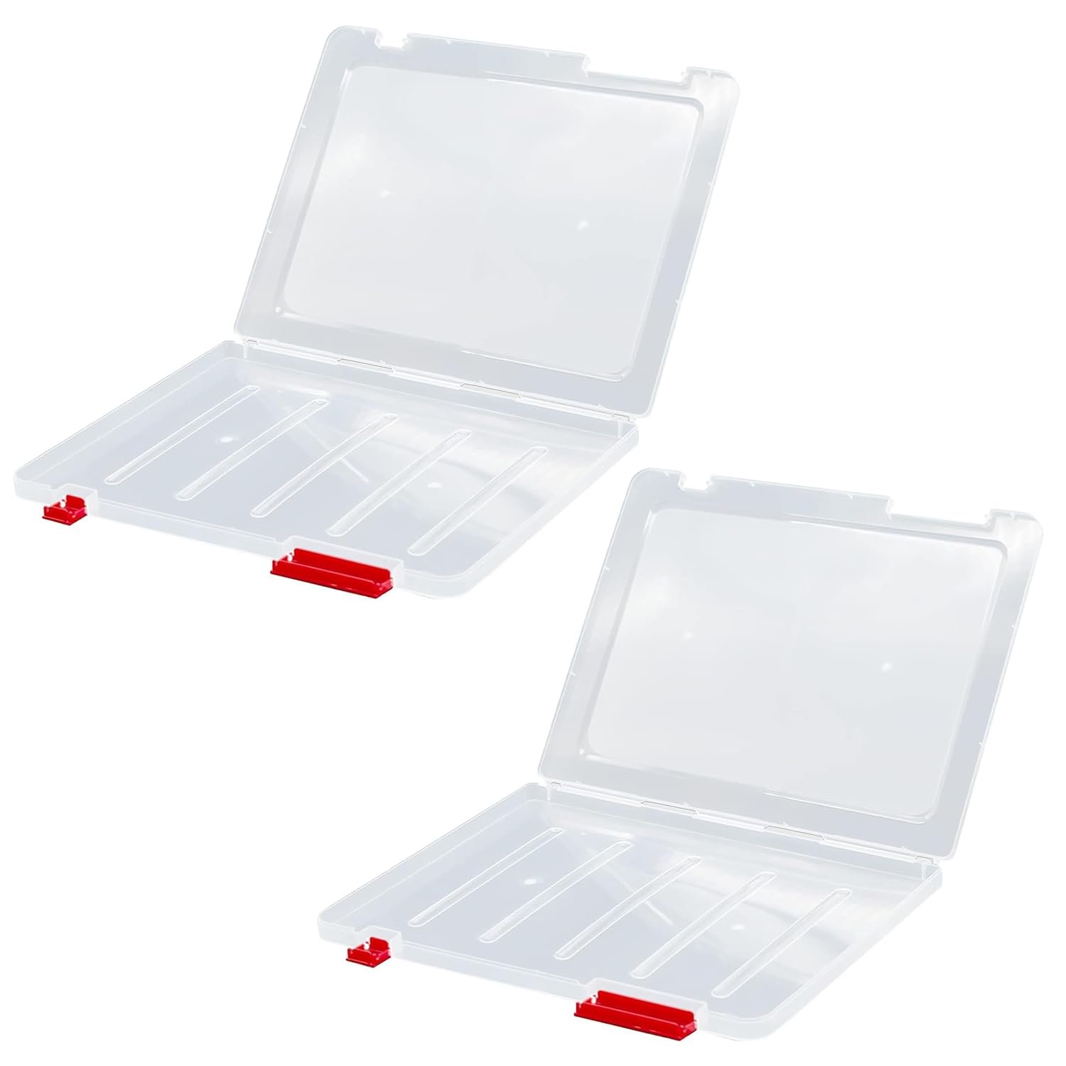 Agora Legal/A4/A5 Lockable Storage File Box Transparent Premium Plastic Portable Archive Organizer Documents, Envelopes, Certificates, Artwork, Photos, Stationery Office Supplies (Pack of 2)