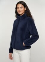 Alan Jones Clothing Women’s Fluffy Yarn Fleece Full-Zip Jacket | Soft Lightweight Warm Outerwear with Stand Collar & Piping at Hem & Cuffs
