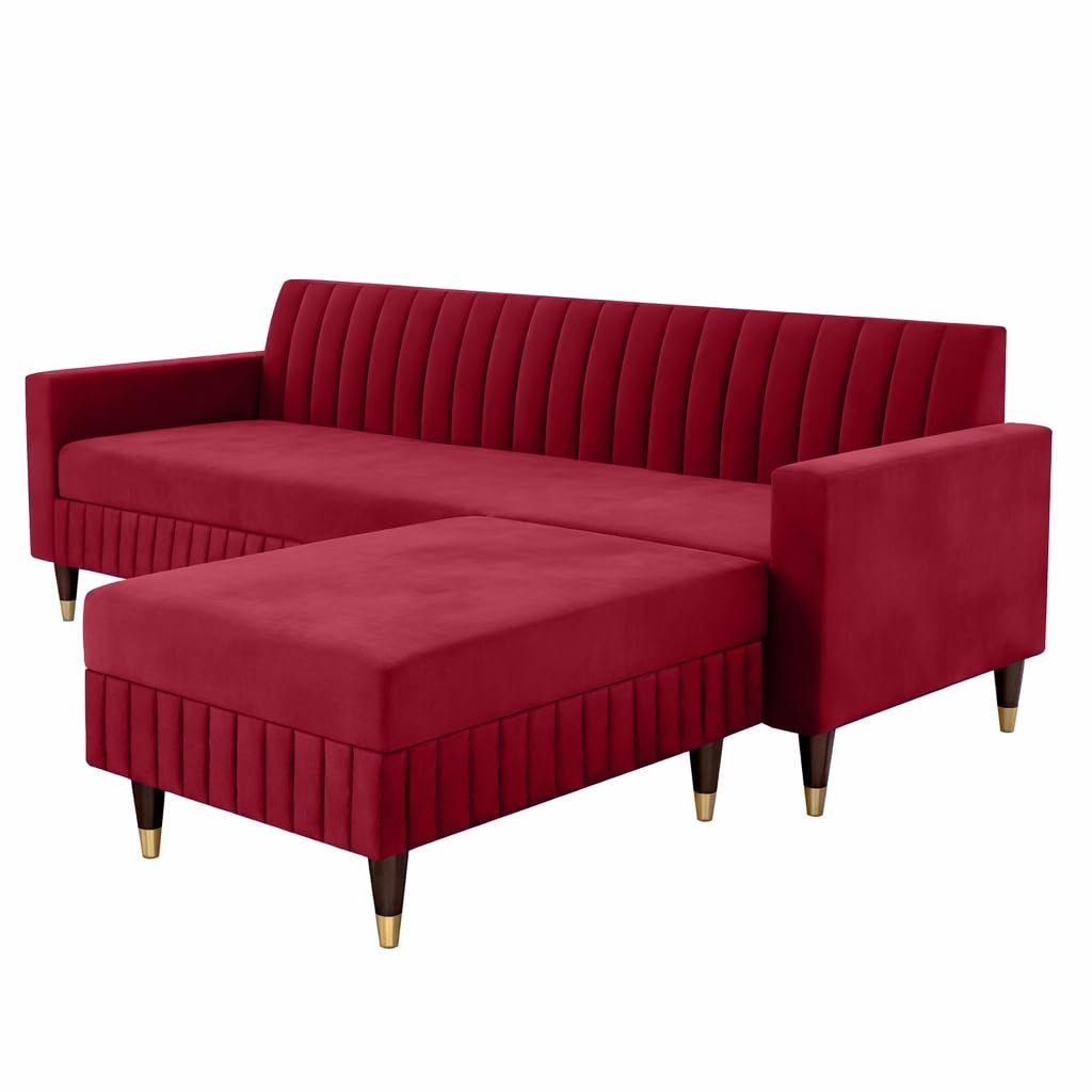 AMATA Omega Solid Wood 4 Seater L Shape red Suede Velvet Fabric Sofa Set with Four Cushions Perfect for Home Office Guests Living Room (03 RED, Omega L Shape 4 SSEATER)(3 Year Warranty)