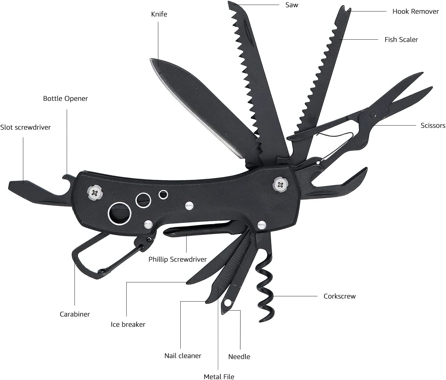 amazon basics 15-in-1 Multi-Tool Pocket Knife with Nylon Sheath