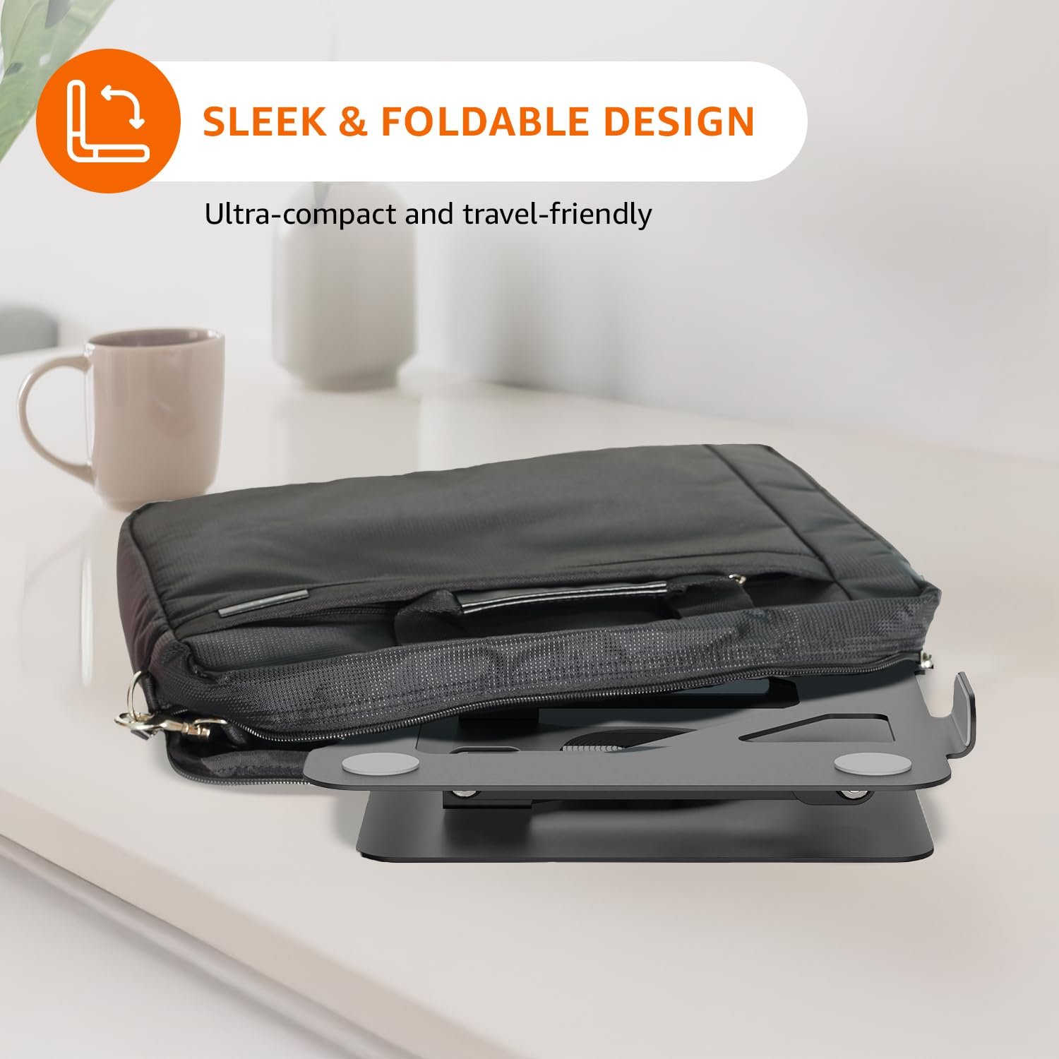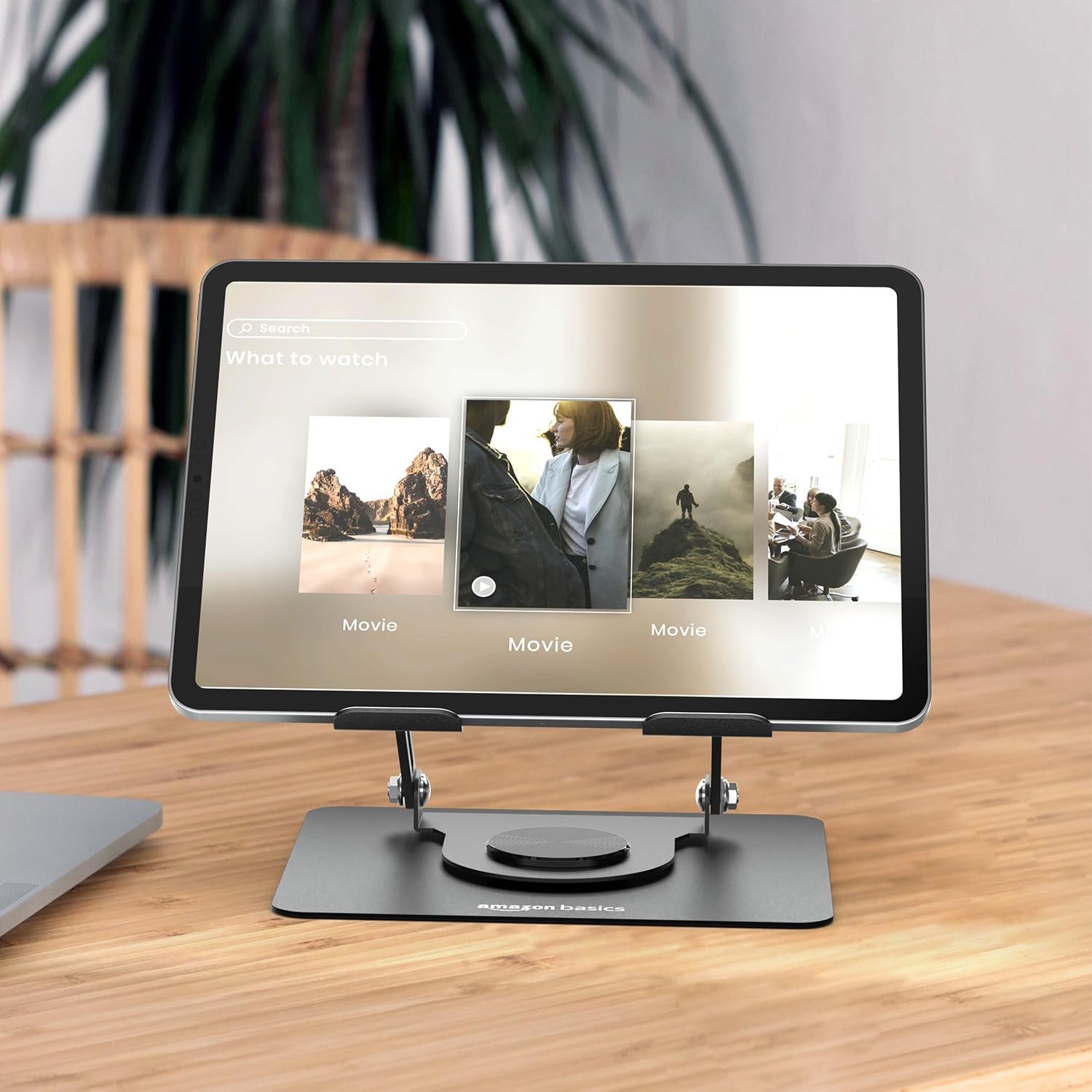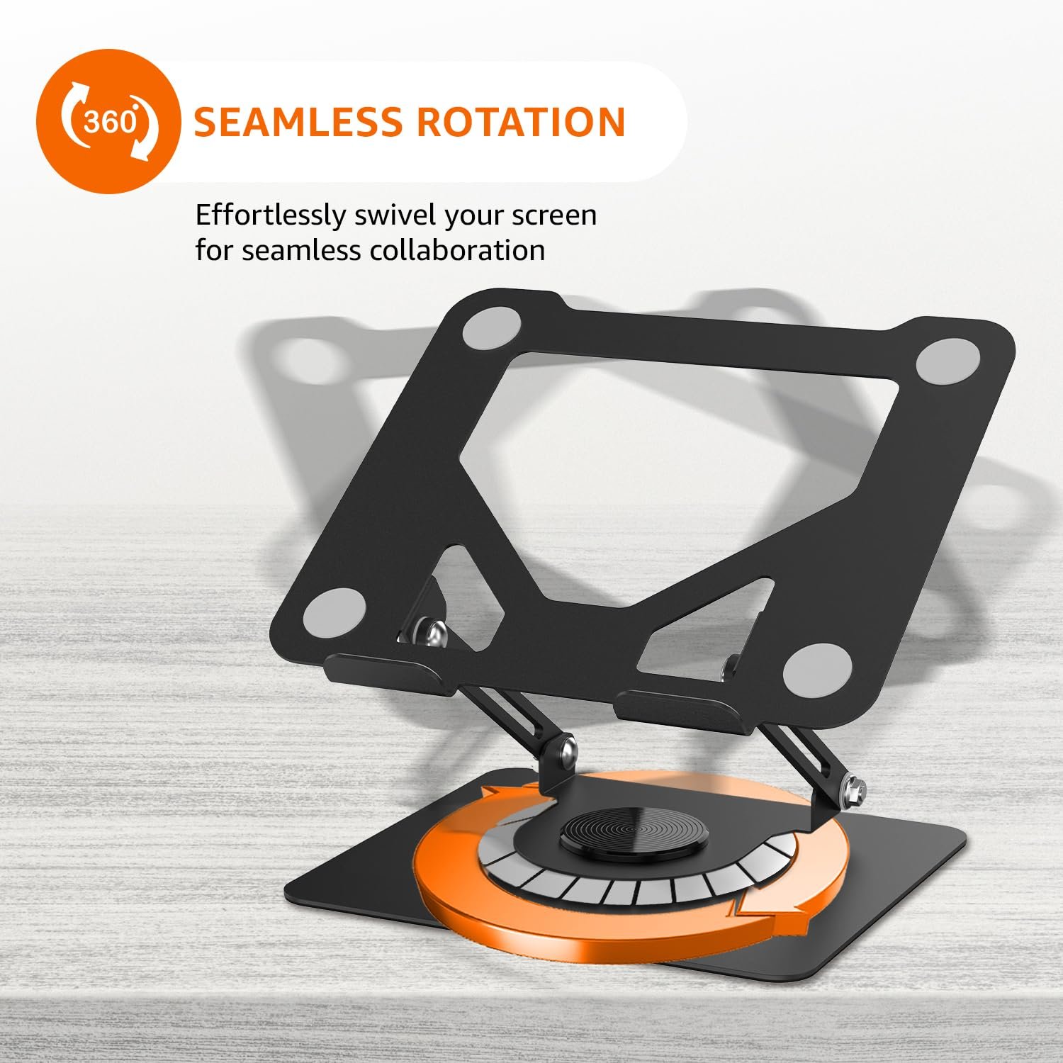 Amazon Basics 360° Rotating Metal Laptop Stand (Black)| Adjustable Height & Angle | Foldable, Sturdy Carbon Steel | Enhanced Airflow | Supports up to 10kg | Compatible with Laptops & MacBook