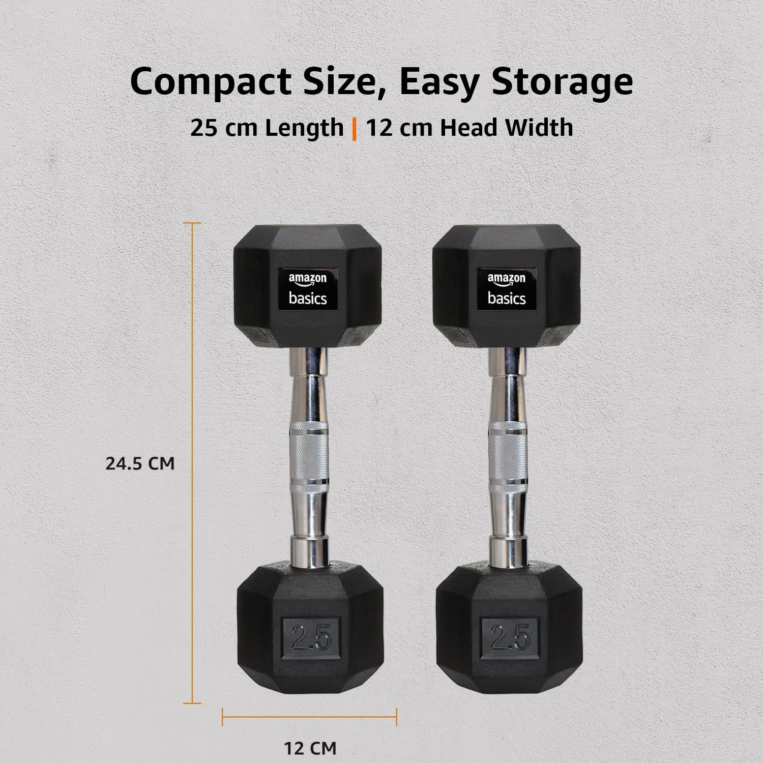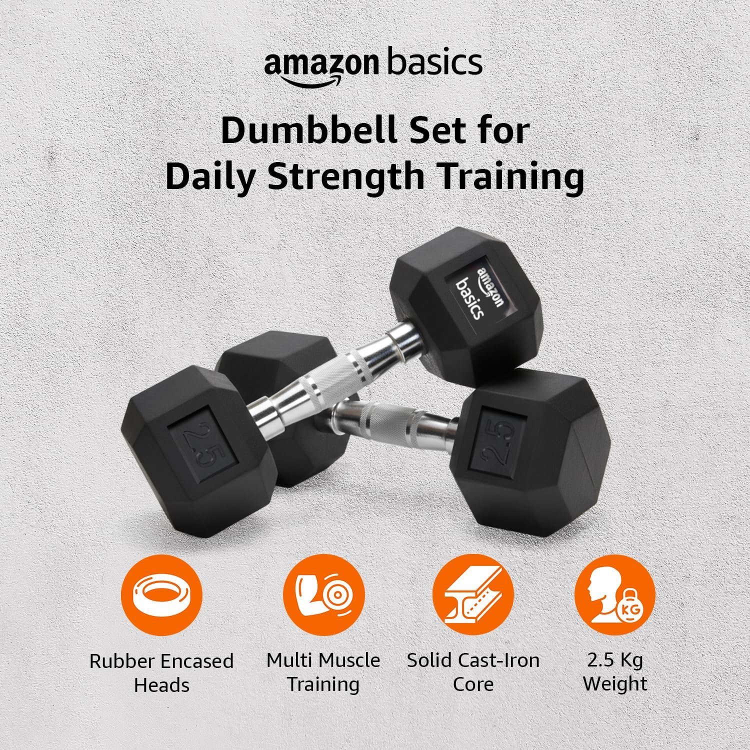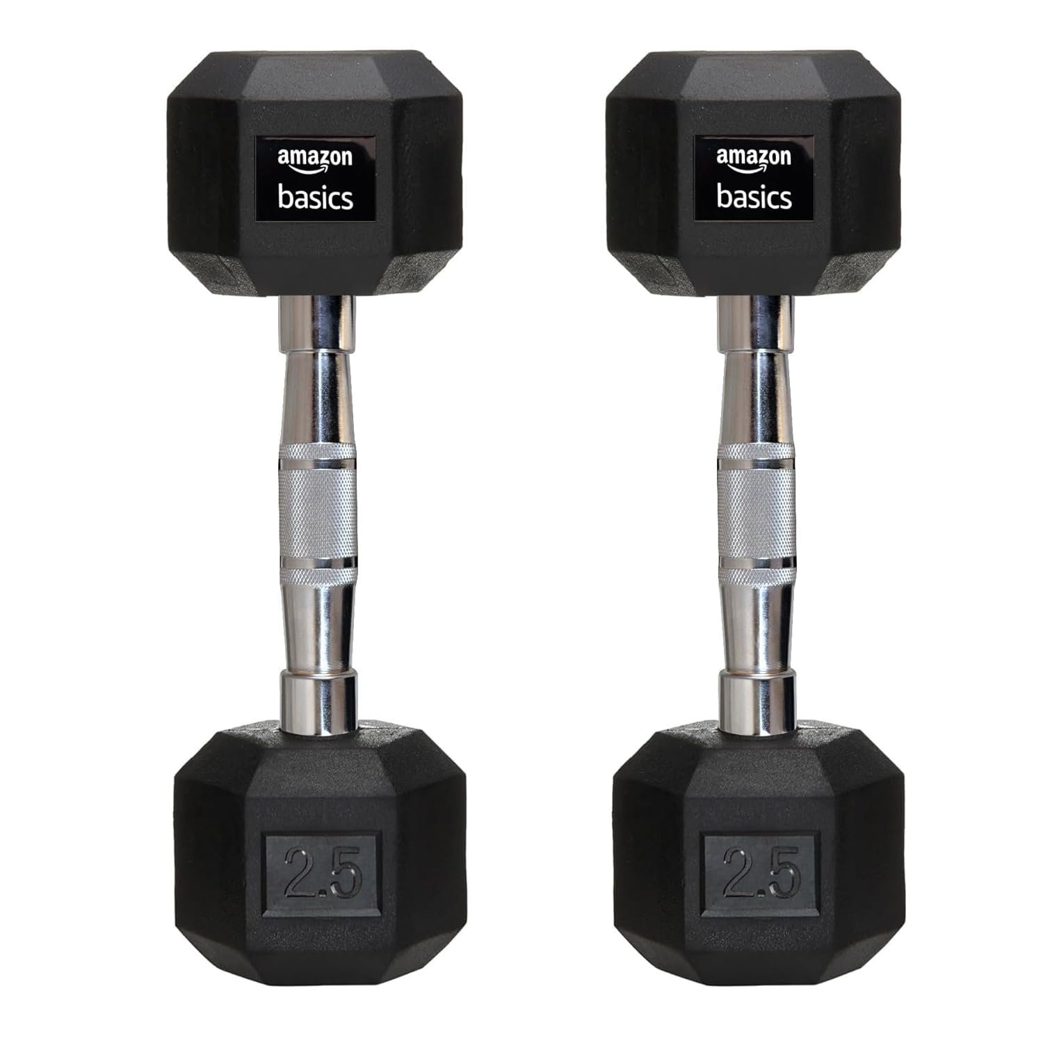 amazon basics Rubber Encased Hex Dumbbell Weight Set Of 2, 2.5 Kg,Black
