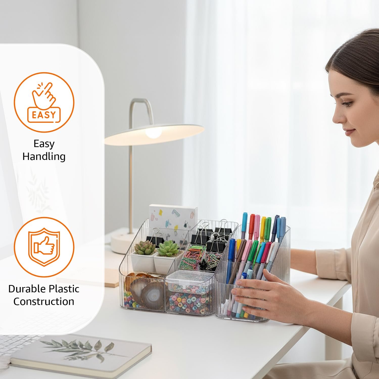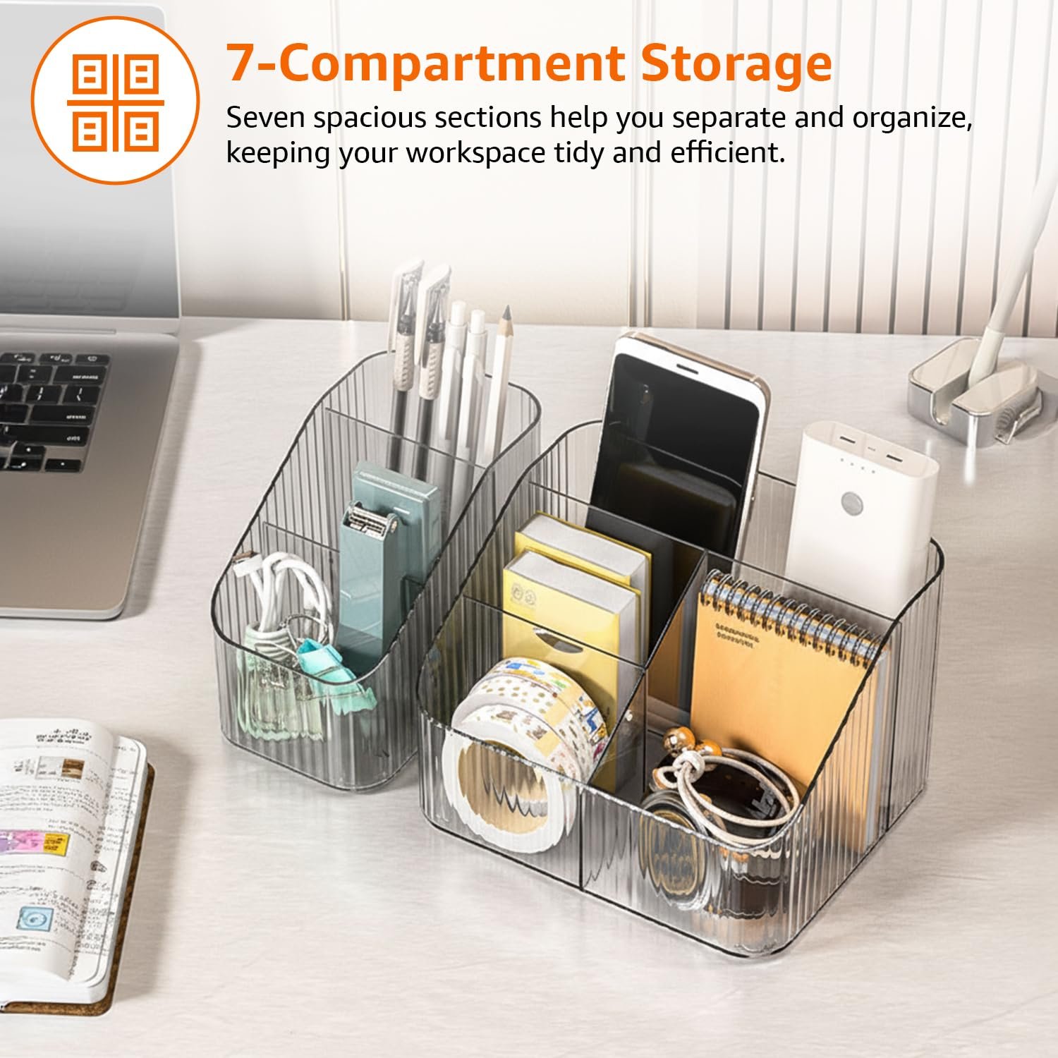 Be the first to review “Amazon Basics Transparent Desk Organiser Combo | 3 & 4 Compartment Units | 3.9 × 14.9 × 12 cm & 18 × 14.8 × 12 cm | White | Plastic | Compact Storage for Office, Makeup, or Crafts | Pack of 2”