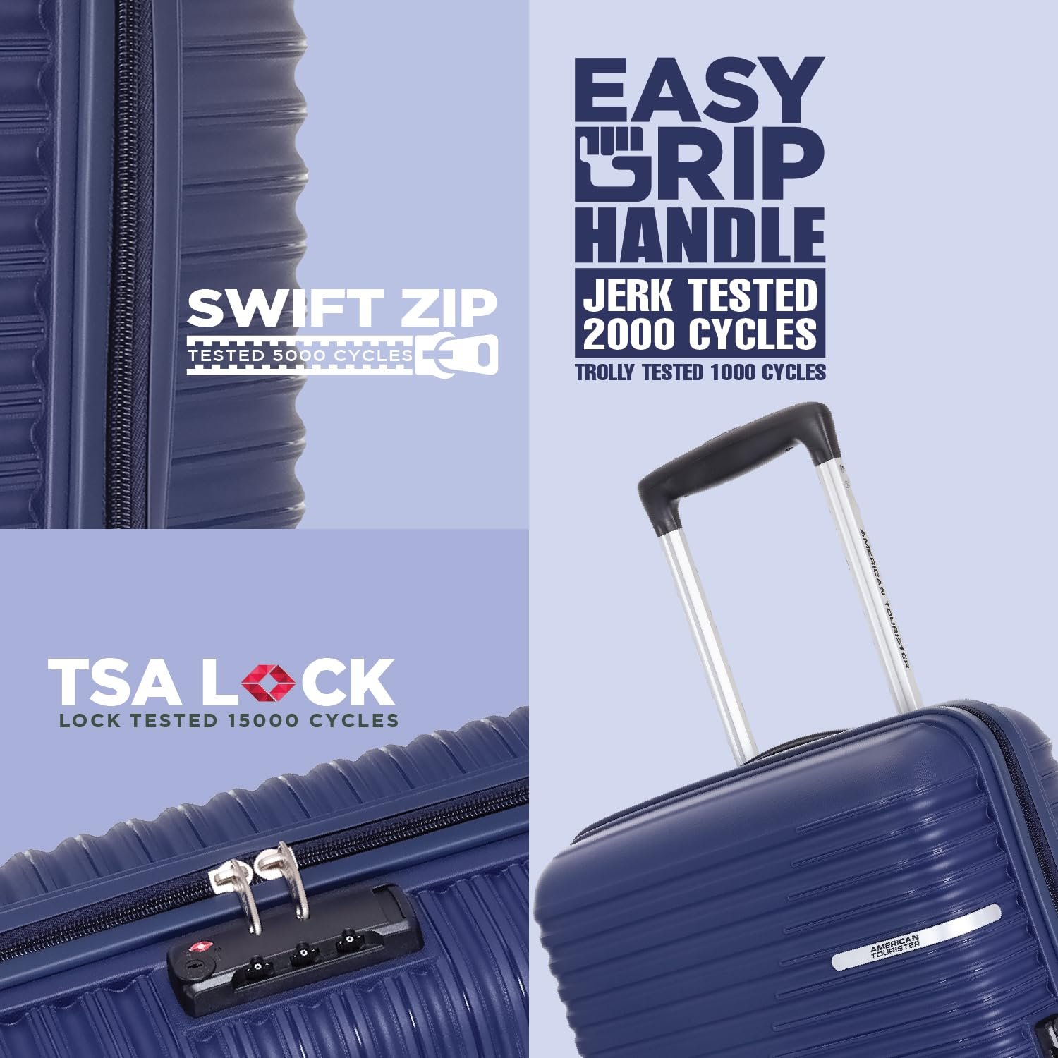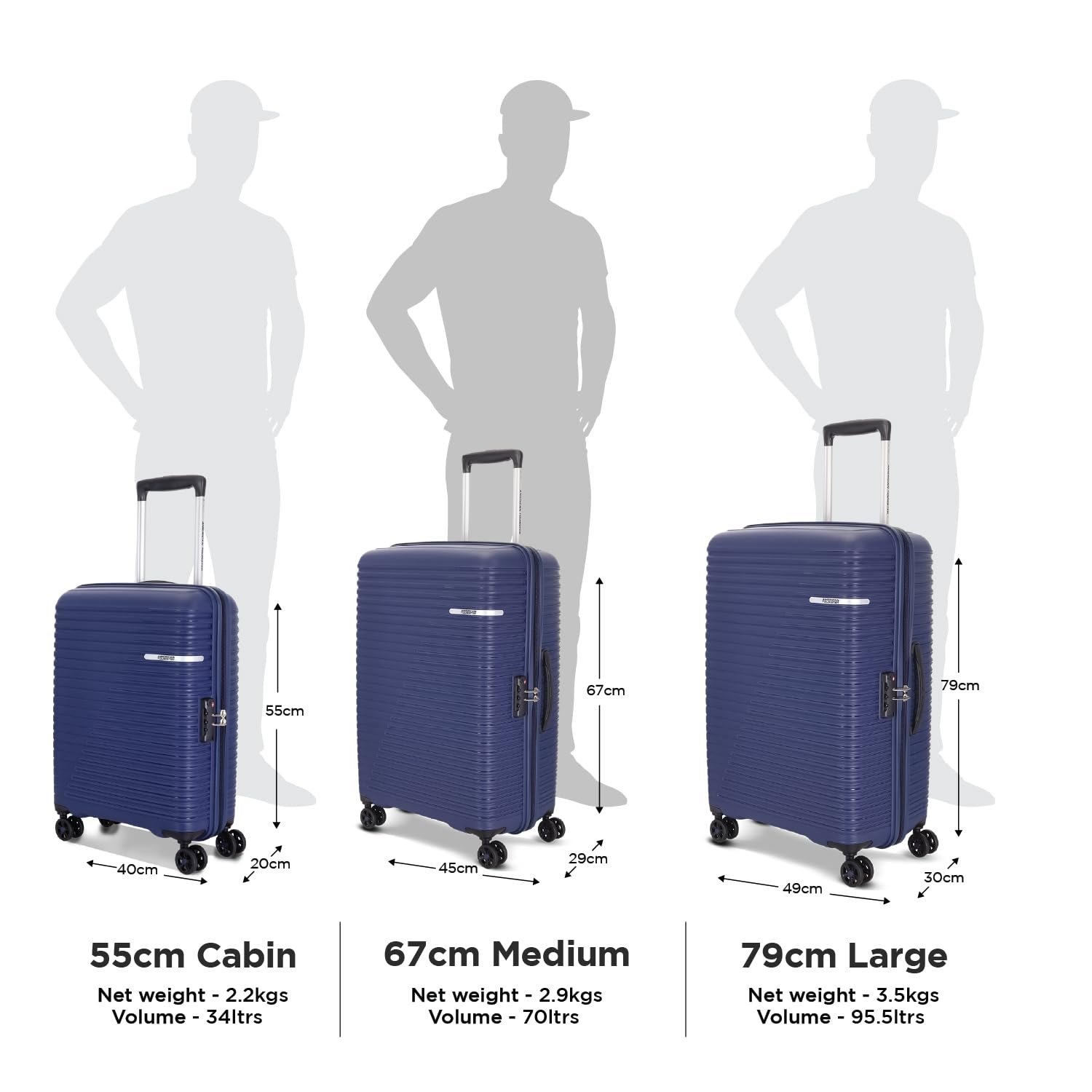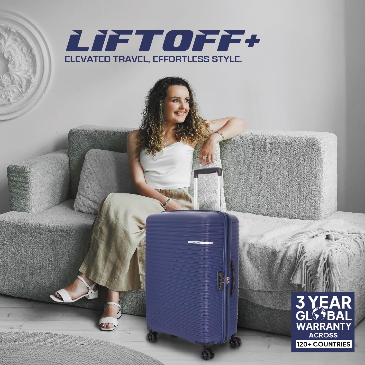 American Tourister 3Pc PP Liftoff+ with TSA Lock & 8 Wheel, Set (Small +Medium +Large) Hard Check-in Suitcase for Travel/Trolley Bag with Double Wheel – Midnight Blue, 55 Cm, 67 Cm, 79 Cm