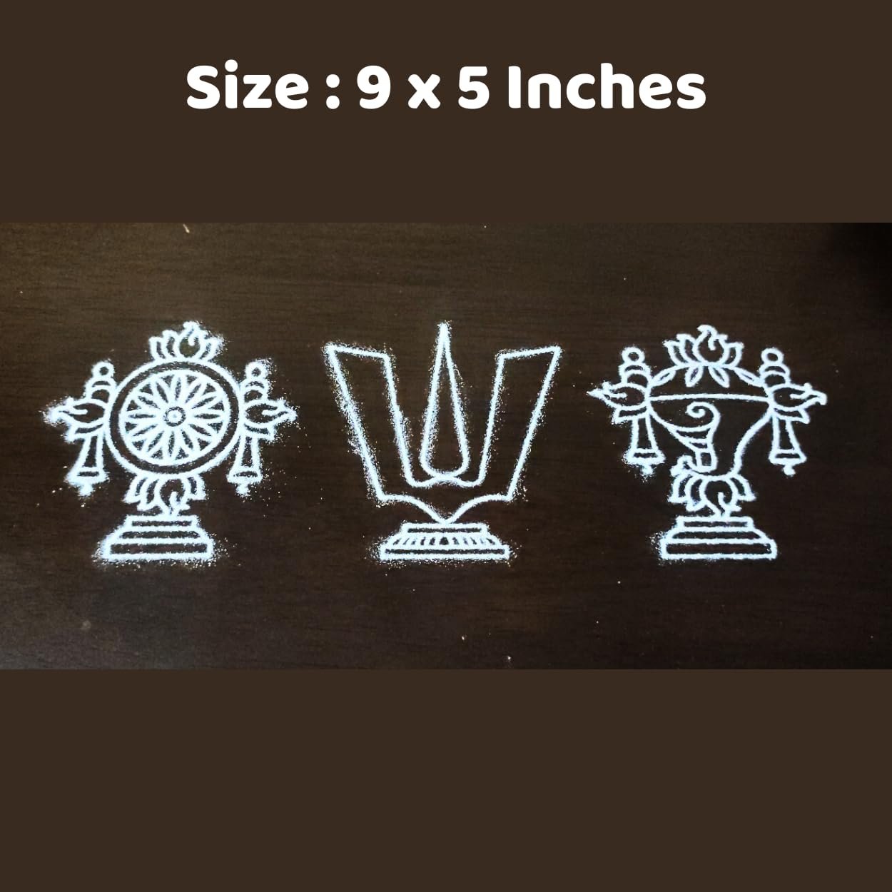 Anciently Shankh Chakra Namah Rangoli Stencil Wooden, Rangoli Sacha Wooden, 1 Piece (9×5 Inches)