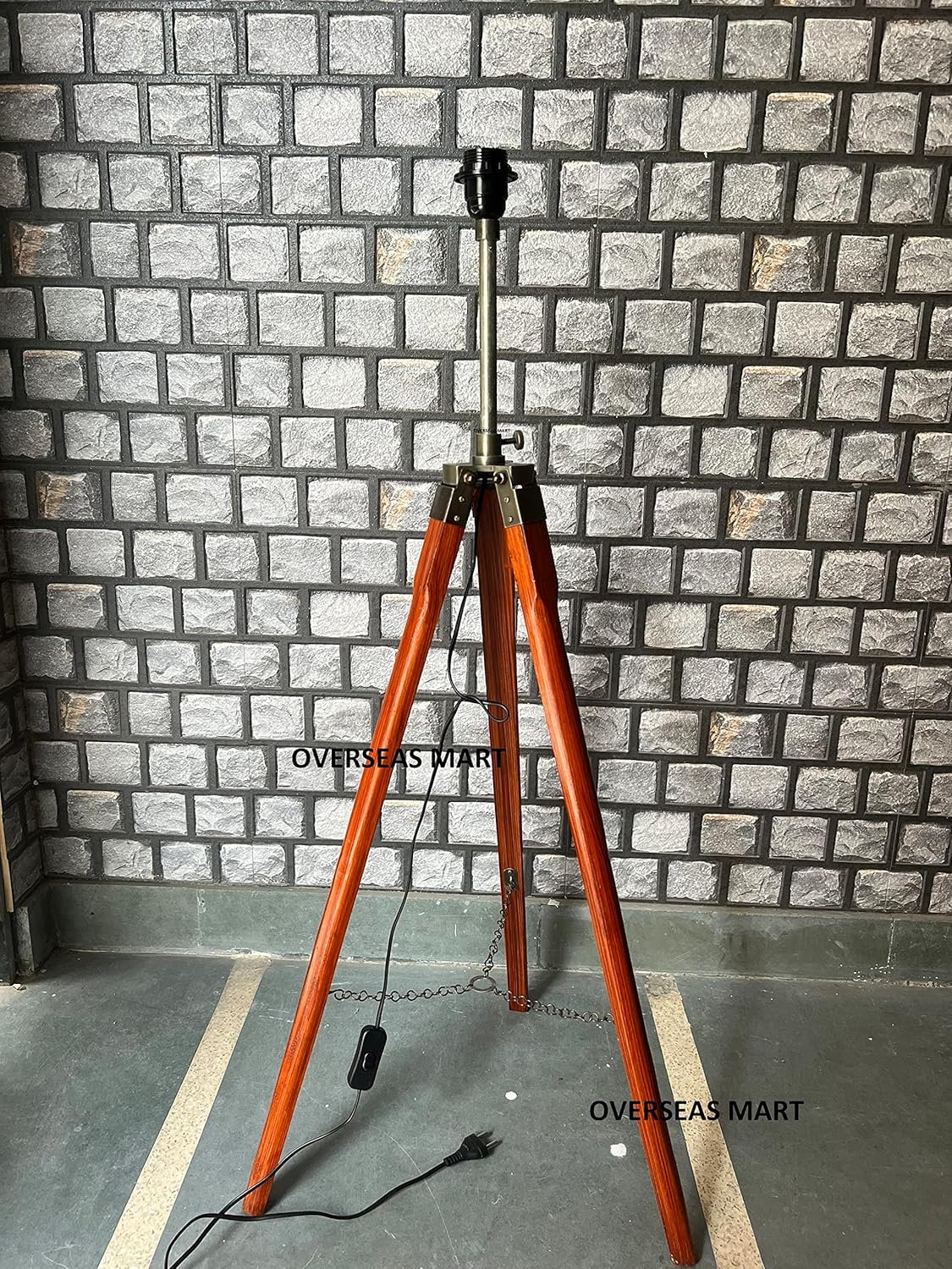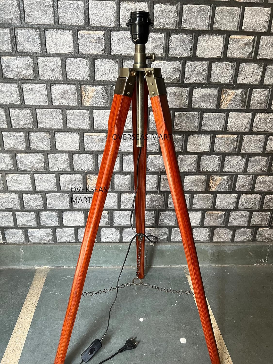 Antique Wooden Tripod Floor Lamp Stand Without Shade and Bulb (Brown)