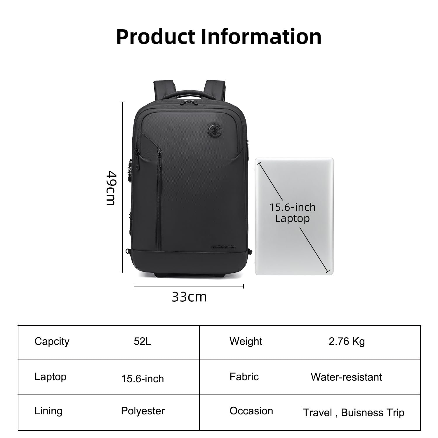 Be the first to review “Arctic Hunter Trolley Backpack Expandable 52L Multiple Pockets Business Trolley Bag with 2 Wheels Aluminum Rolling Laptop Bag Stylish Suitcase for Business Travel Water Resistant Black”