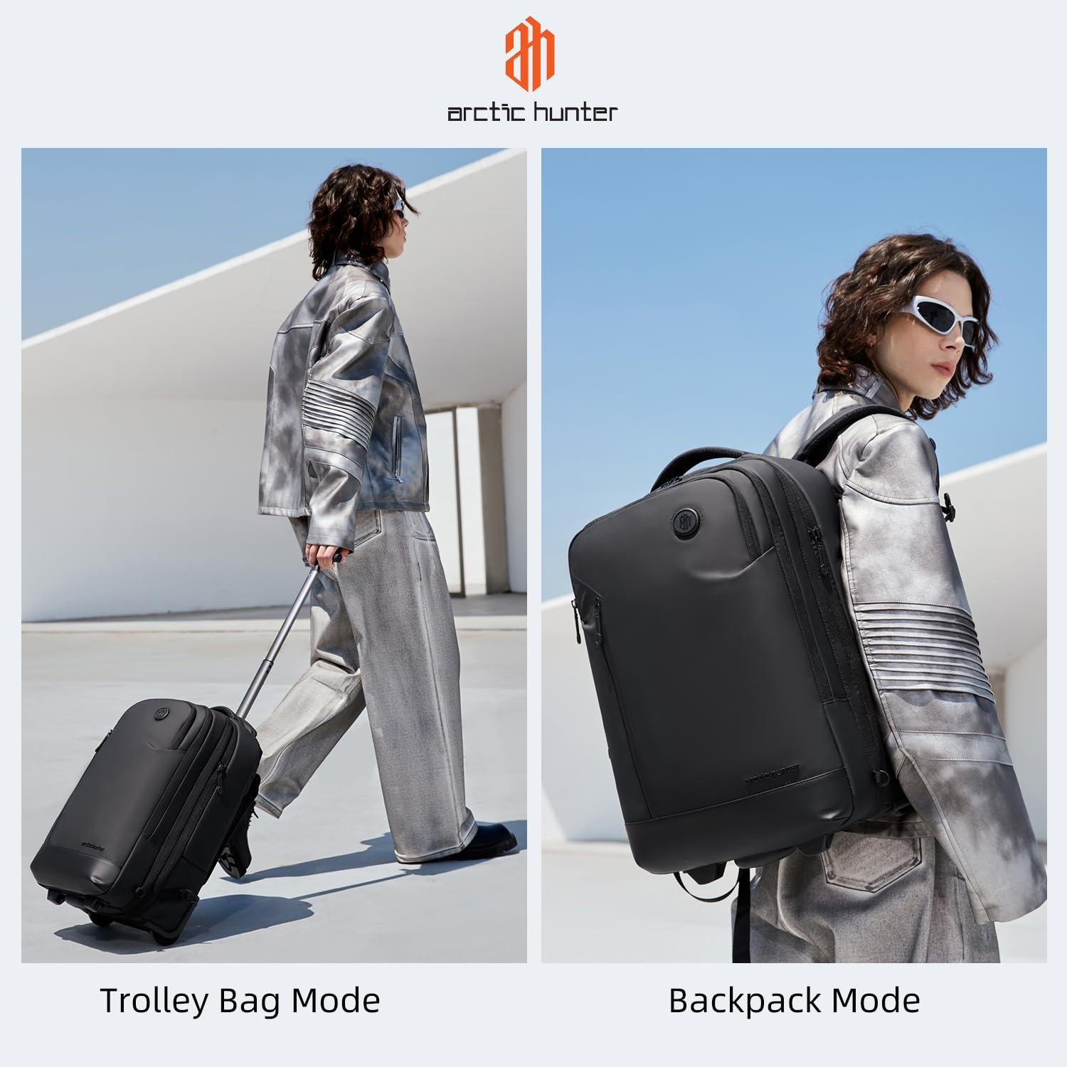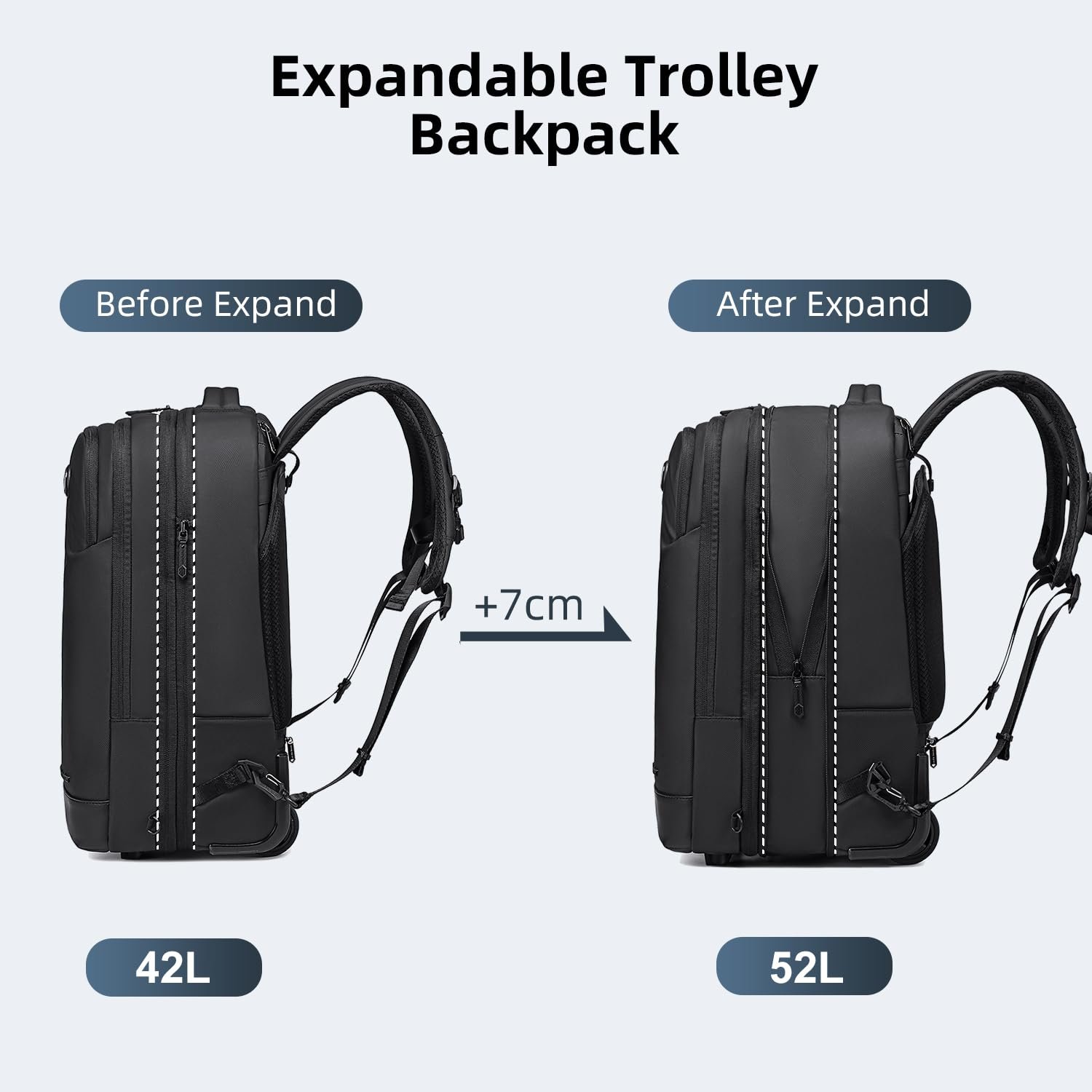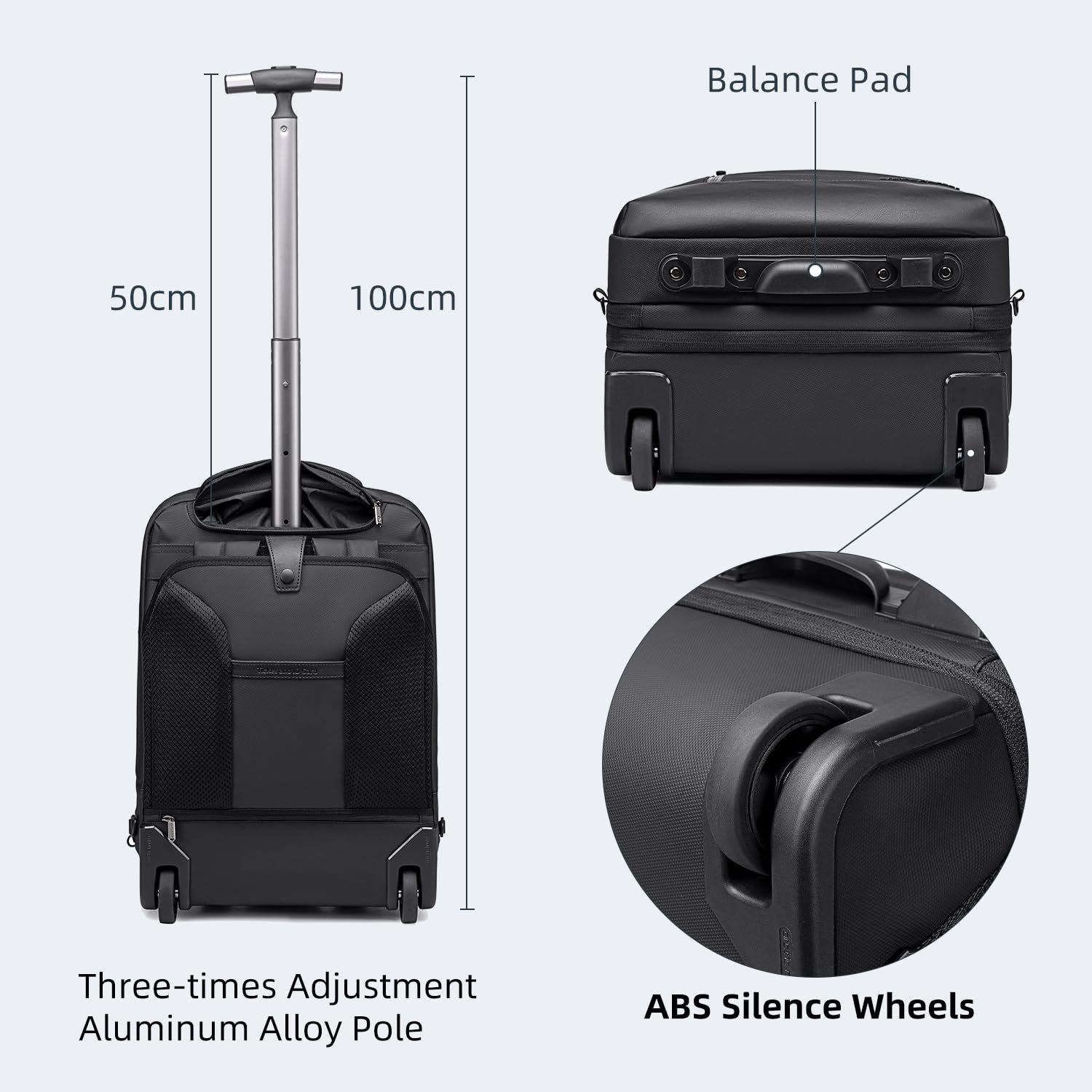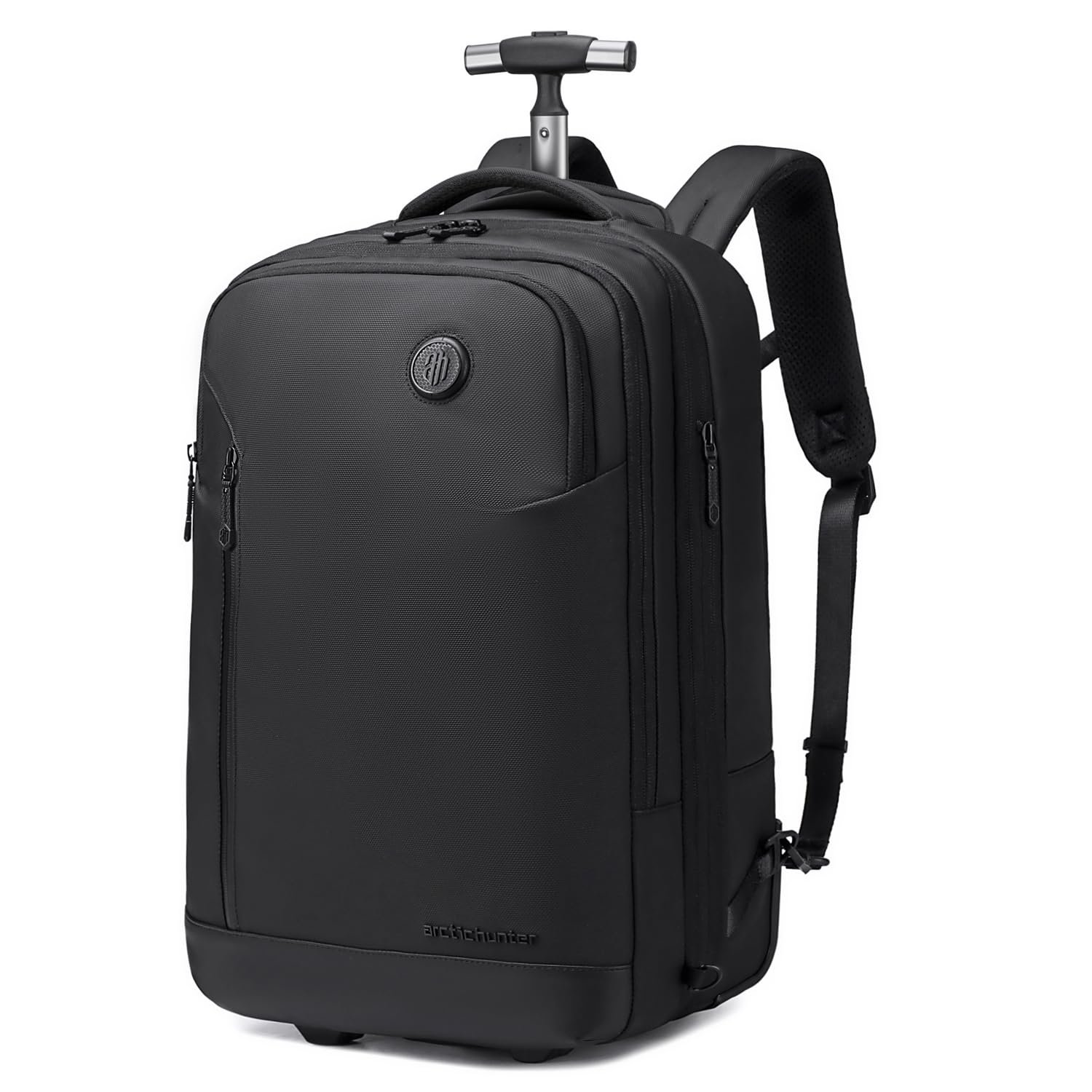 Arctic Hunter Trolley Backpack Expandable 52L Multiple Pockets Business Trolley Bag with 2 Wheels Aluminum Rolling Laptop Bag Stylish Suitcase for Business Travel Water Resistant Black