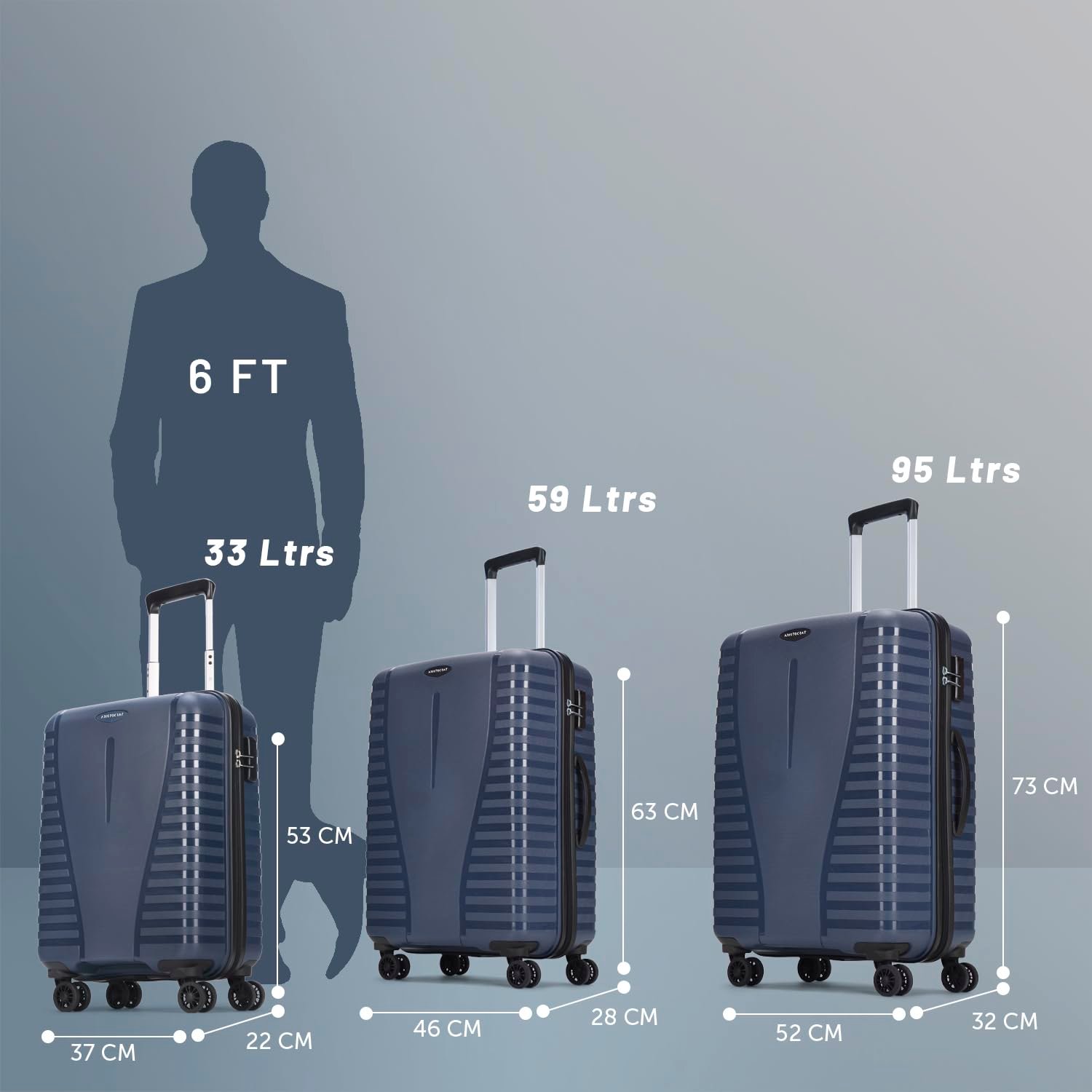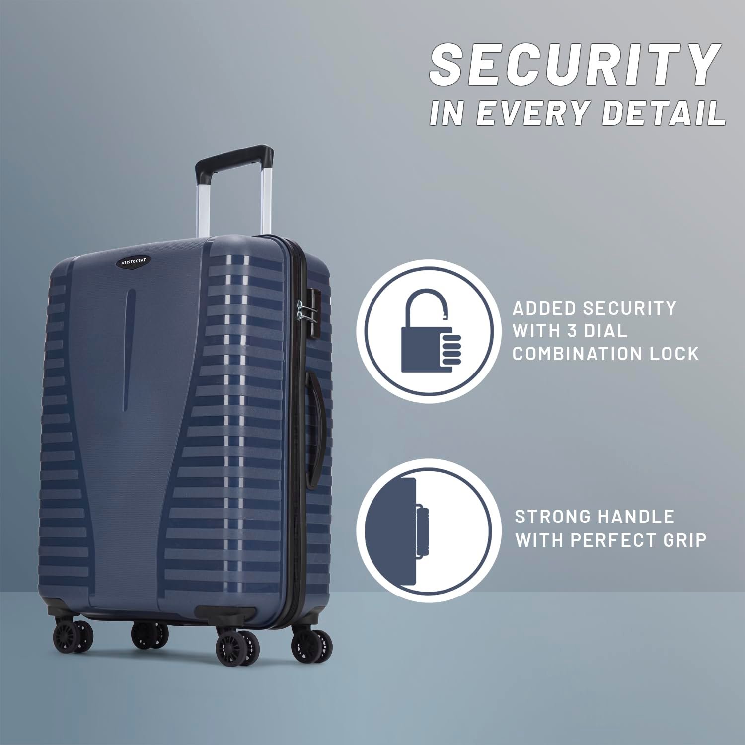 Be the first to review “Aristocrat 3 Pc Airpro Set Cabin 55cm(Small) Check-in 66cm(Medium) Check-in 75cm(Large) 8 Wheels Spinner Trolley Bags, Hard Case Luggage, Lightweight Bag & Combination Lock|3 Years Warranty (Blue)”
