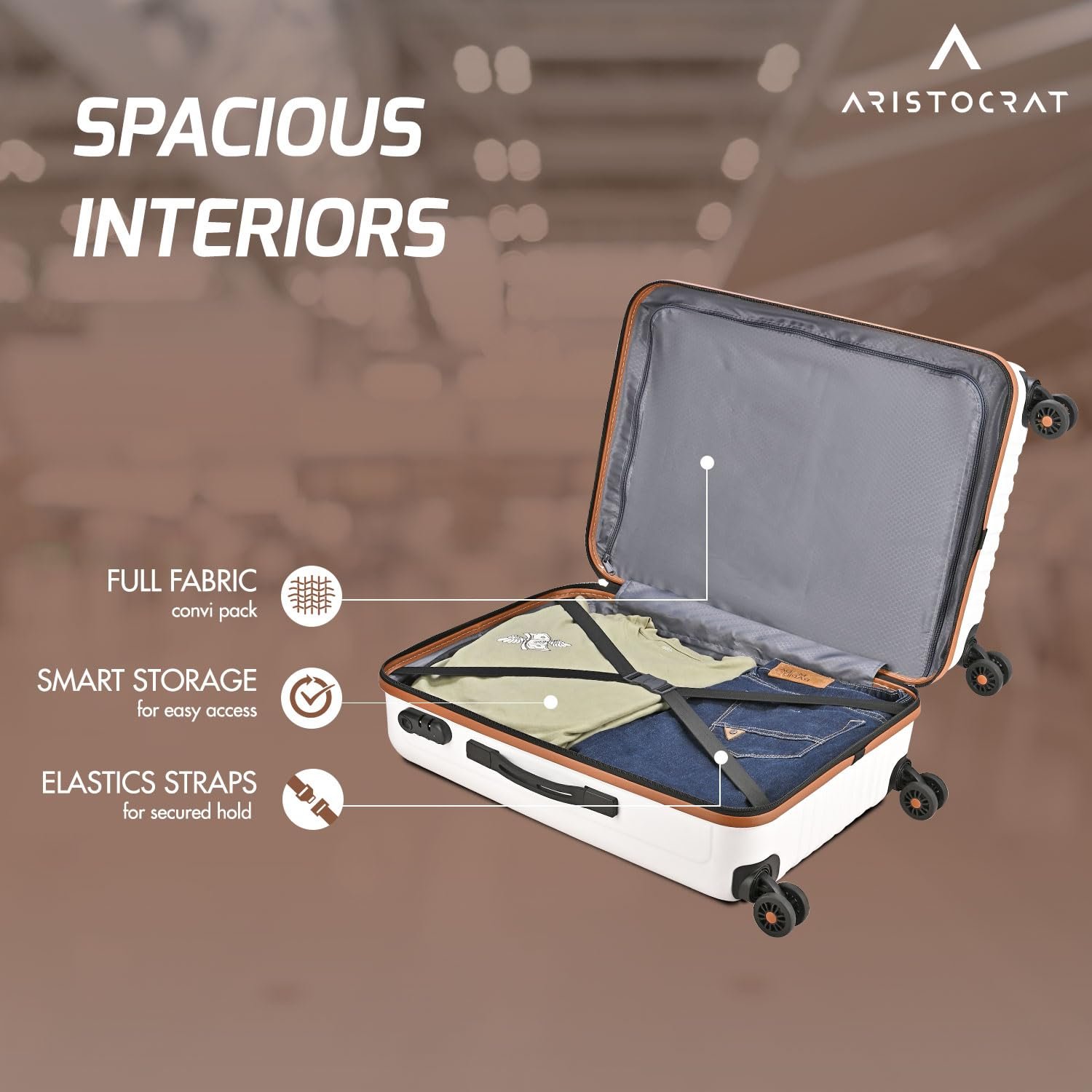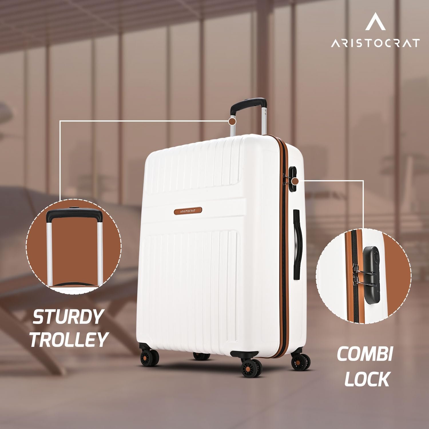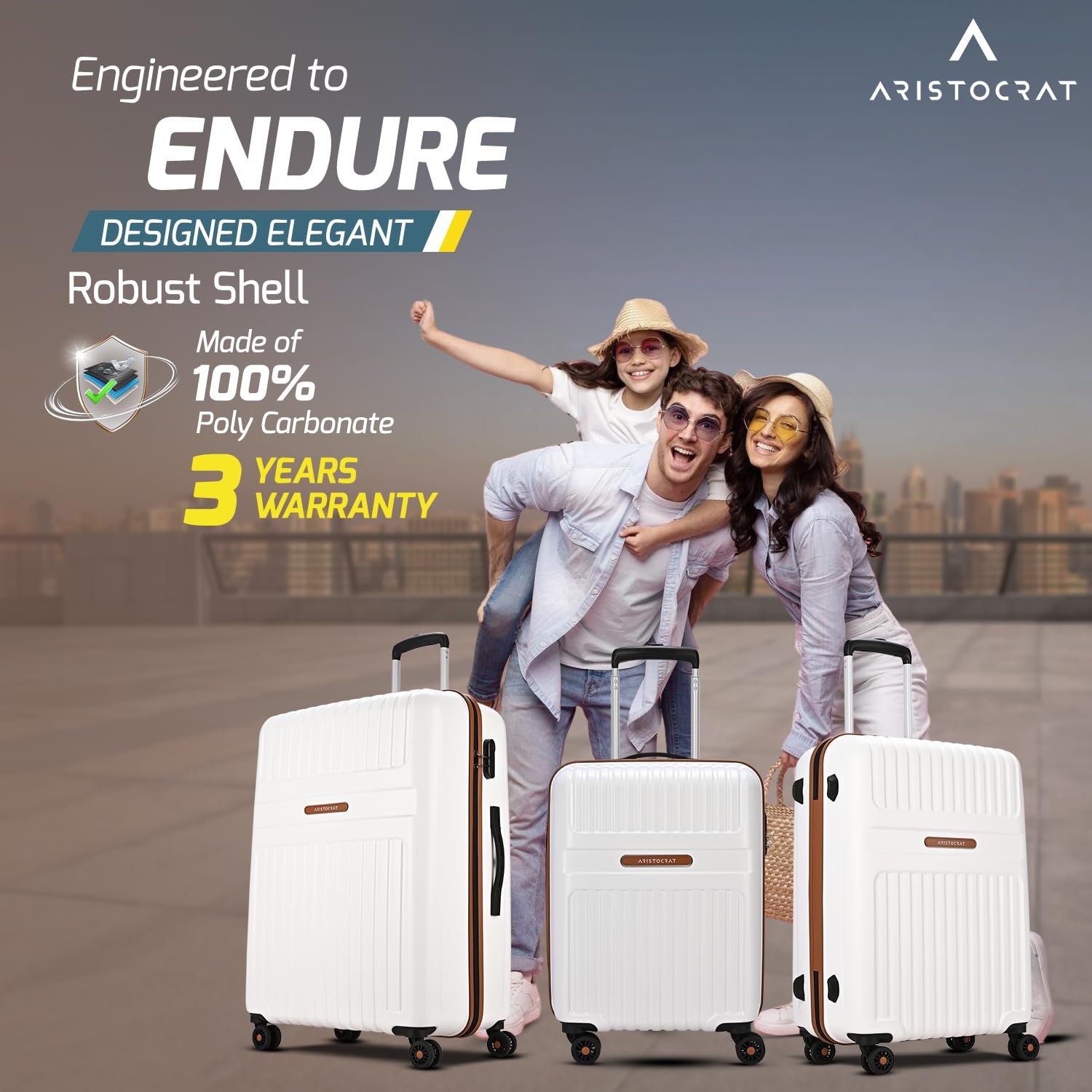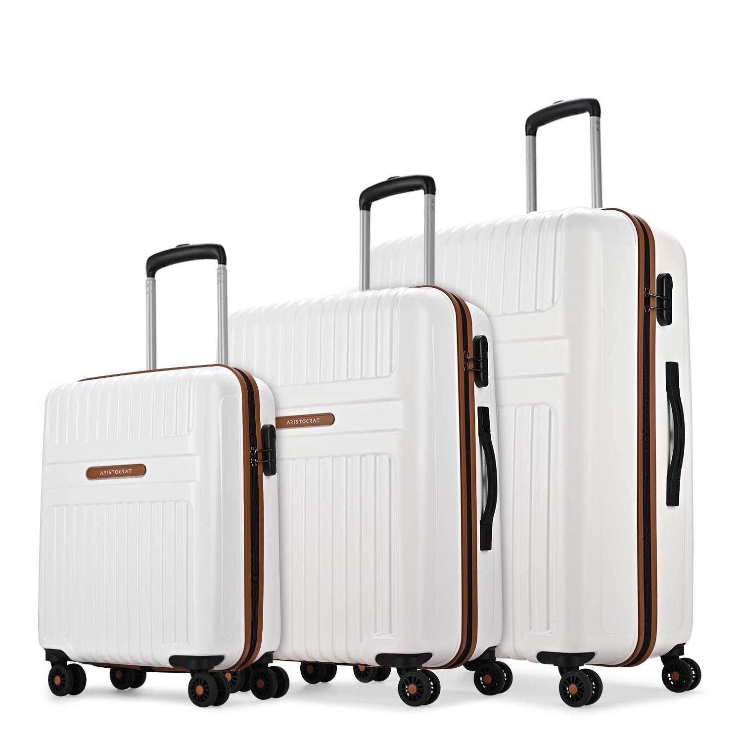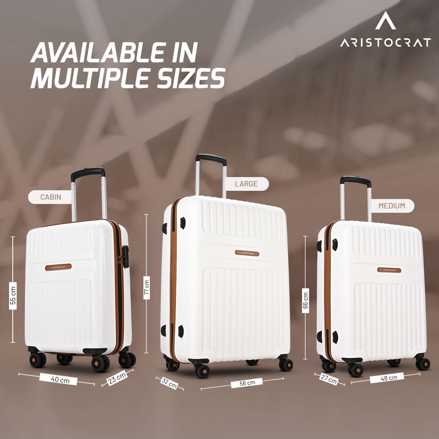 Aristocrat Atlas Set of 3 Trolley Bag 55,66 & 77cm | Small+Medium+Large | Hard Luggage | Smooth 8-Wheel Suitcase | Combination Lock with Sturdy Zipper | Full Fabric Convipack | 3-Year Warranty (White)