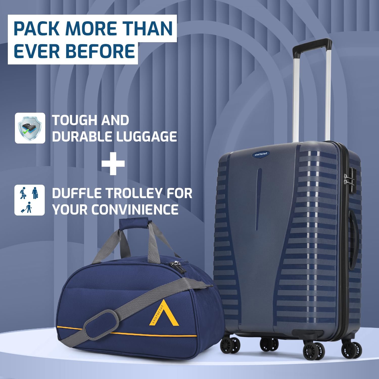 Aristocrat Polycarbonate Hard Shell Spinner Suitcase AIRPRO 66 CR.Teal+Cadet DF 62 Navy Blue, Small, 66 Cm