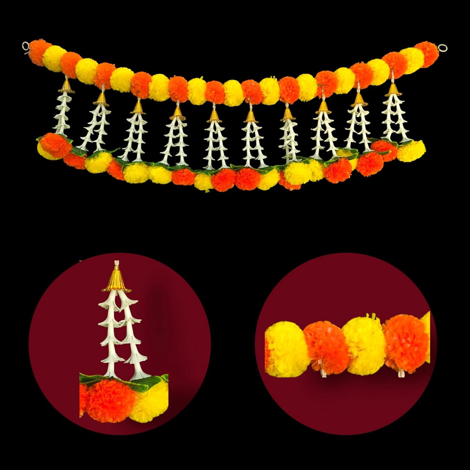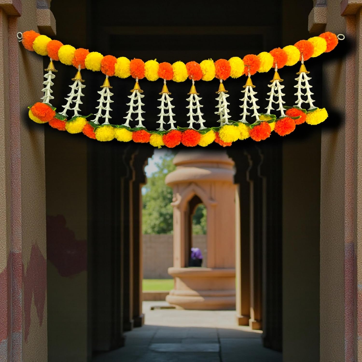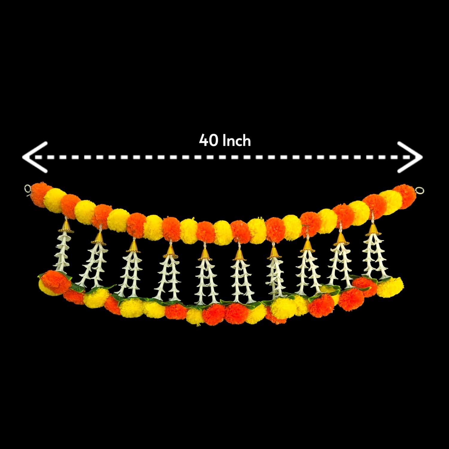Artificial Marigold Bandanwar with Tuberose & Bell, Yellow & Orange, 40 Inch, Bandanwar for Entrance, Home, Temple & Festive Decor & Housewarming Gifts (B0102)