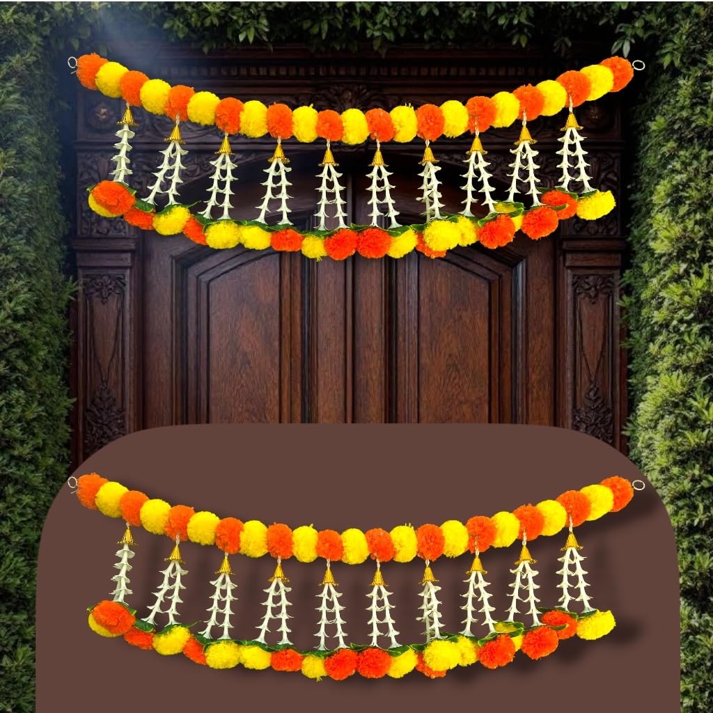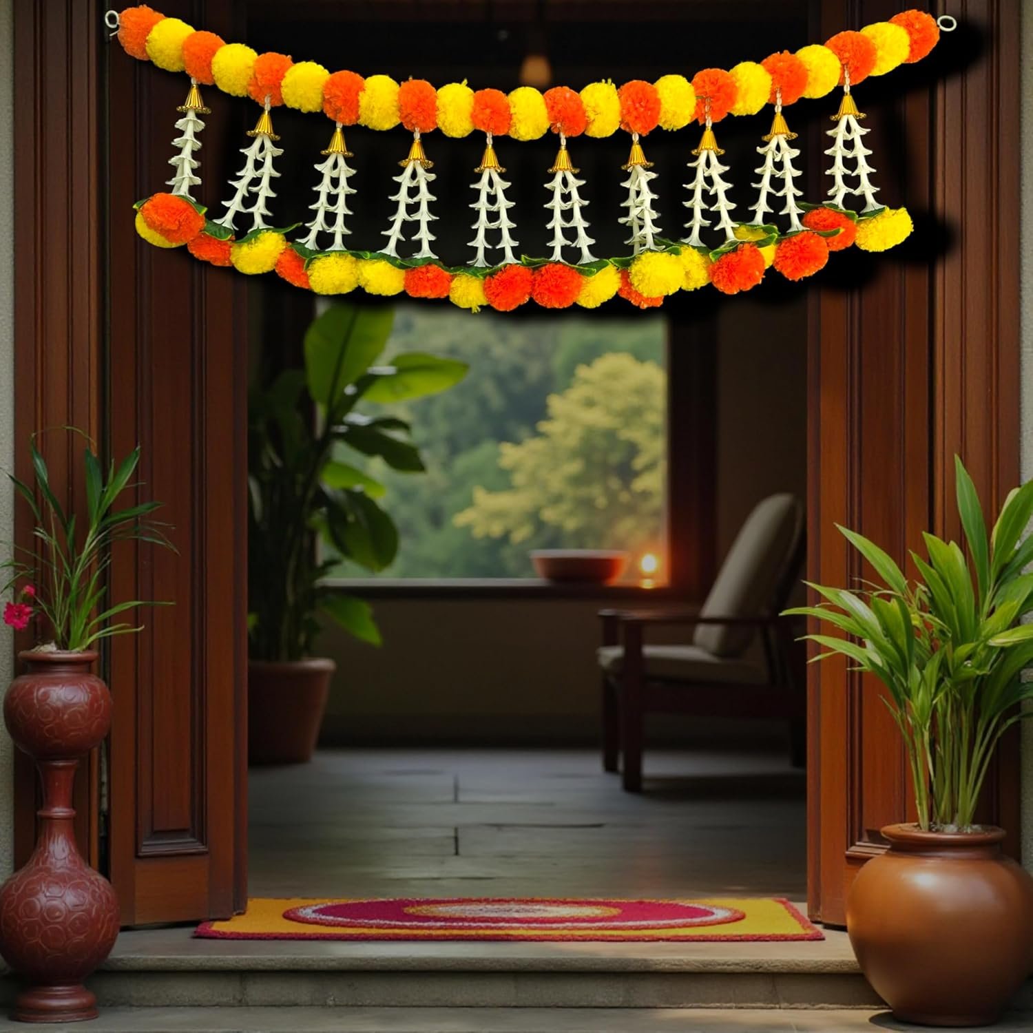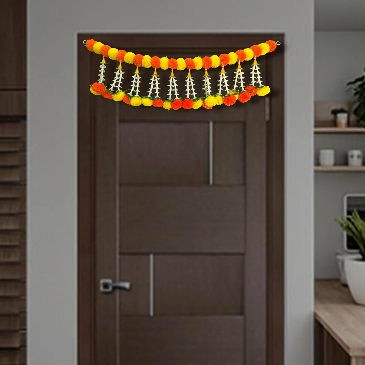 Artificial Marigold Bandanwar with Tuberose & Bell, Yellow & Orange, 40 Inch, Bandanwar for Entrance, Home, Temple & Festive Decor & Housewarming Gifts (B0102)