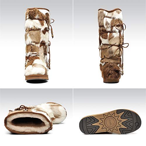 Aumu Women Tradional Wooden Bead String Sheepskin Fur Shearling Stylish Knee High Winter Snow Boots Chestnut Size 9
