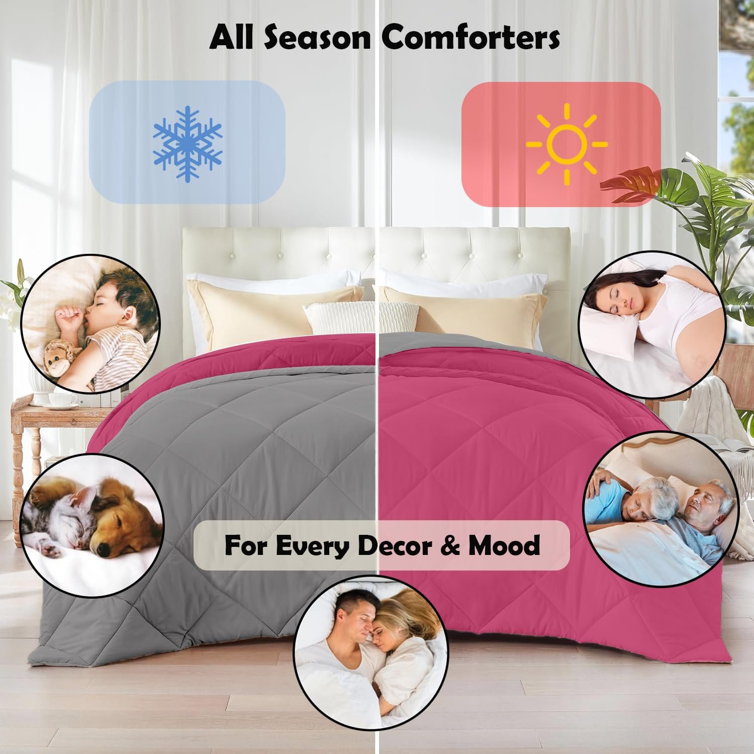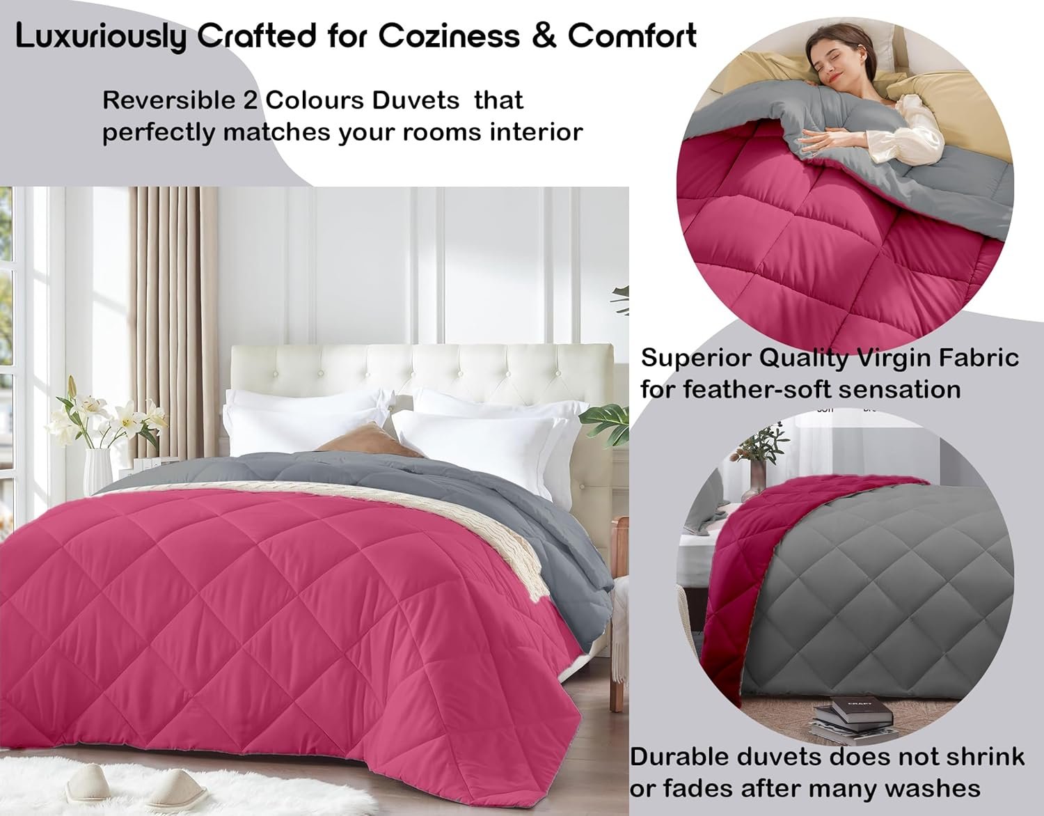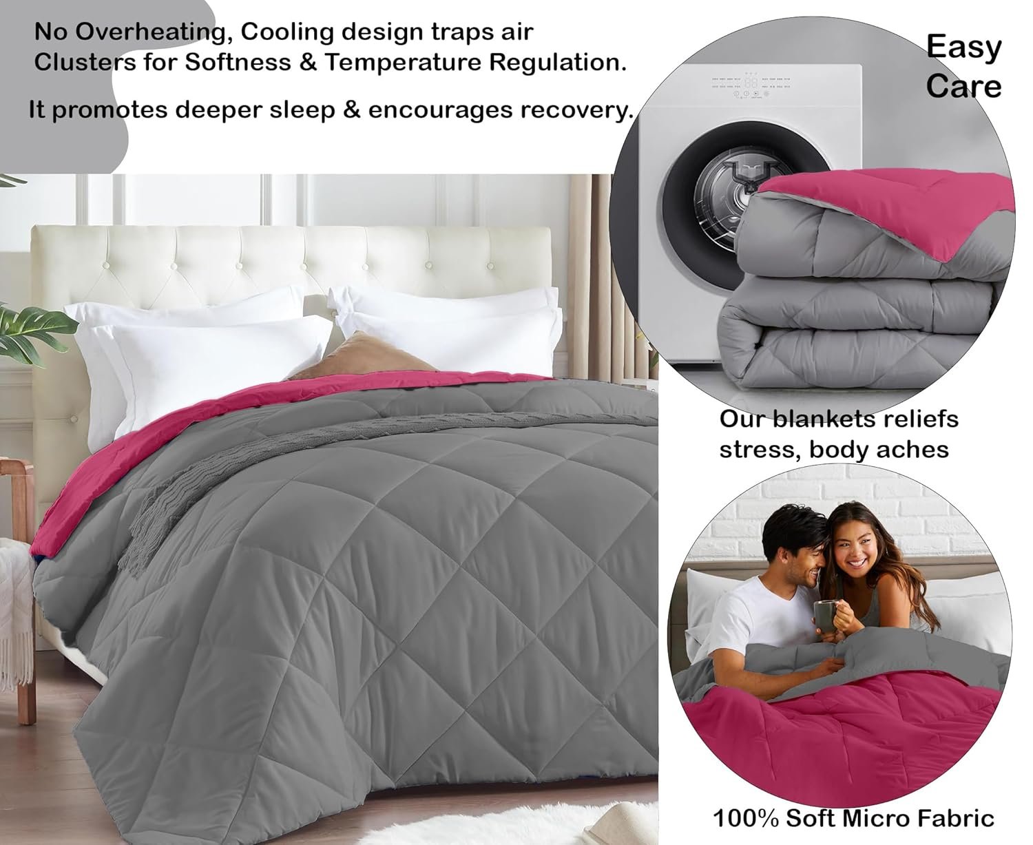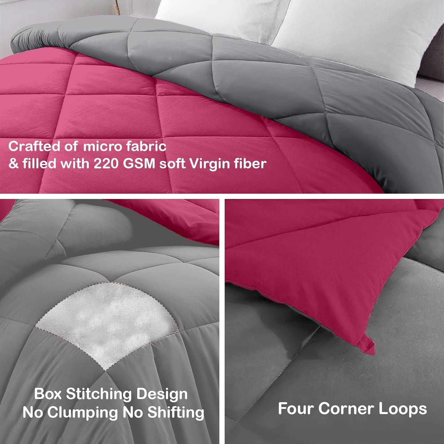 AYKA Reversible Comforter 220 GSM Microfiber Reversible AC Comforter/Blanket for Winter/Quilt/Duvets for King Size Double Bed Comforter (90 * 100, Pink & Grey)| TC – 220