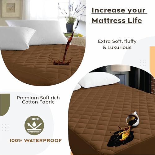 Ayka Waterproof Cotton Quilted Mattress Protector Queen Size Breathable Hypoallergenic Noiseless Ultra Soft Fitted Bed Protector 75×60 inch Mattress/Bed Cover (Queen 75×60 inch | 6.25×5 ft, Brown)