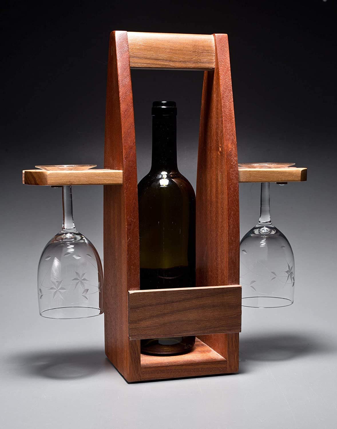 Bar Cart with Wine & Glass Holder – 3 Shelf Rustic Wooden Serving Trolley