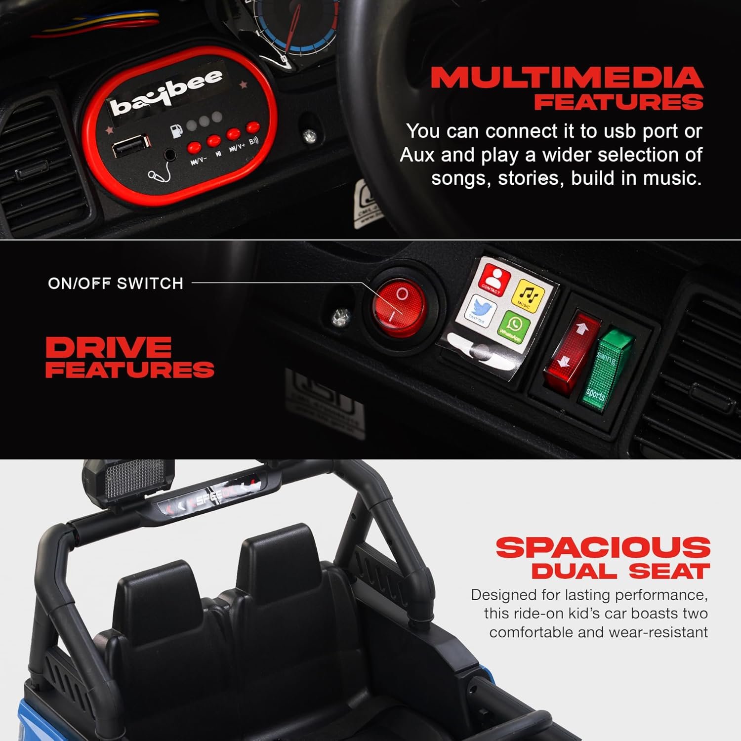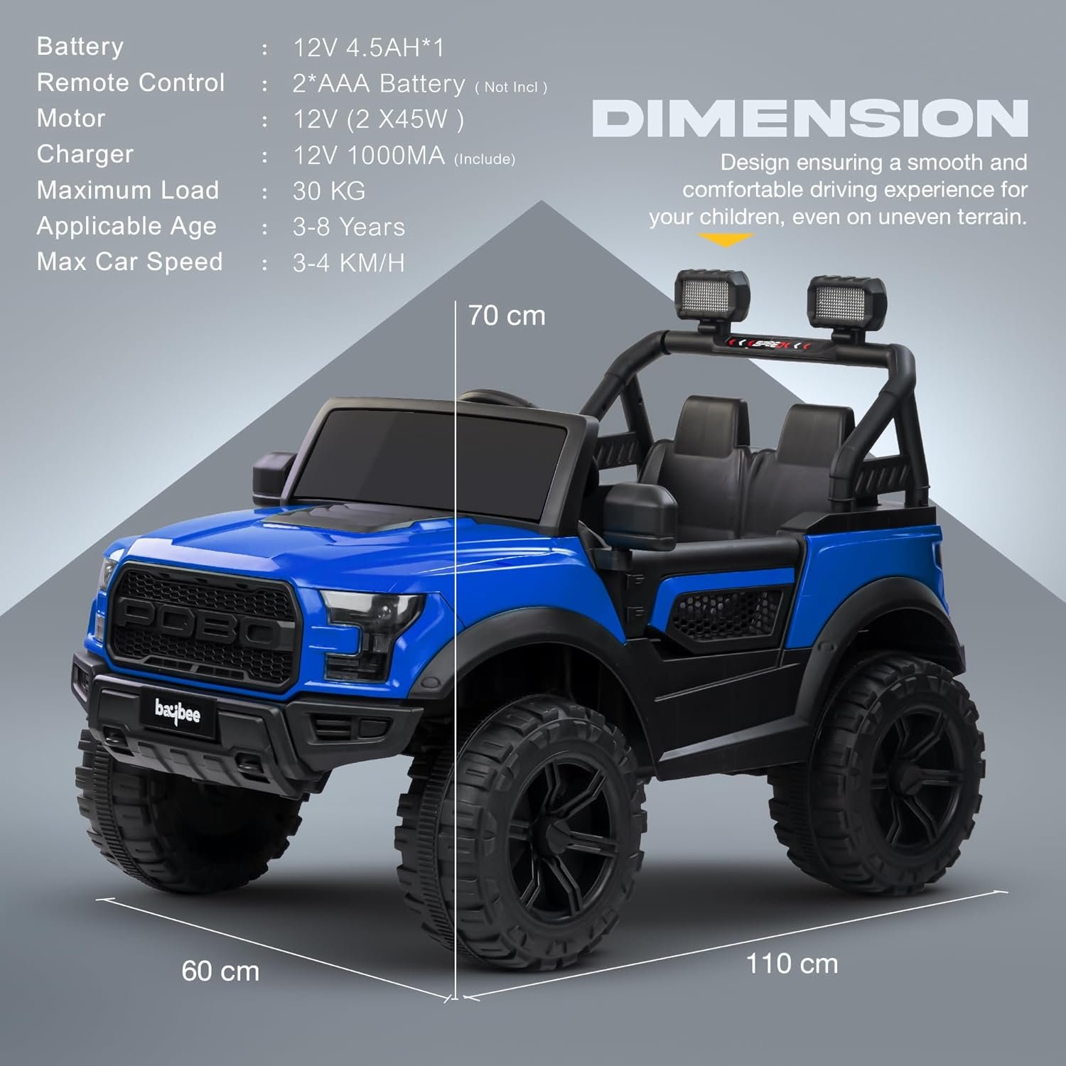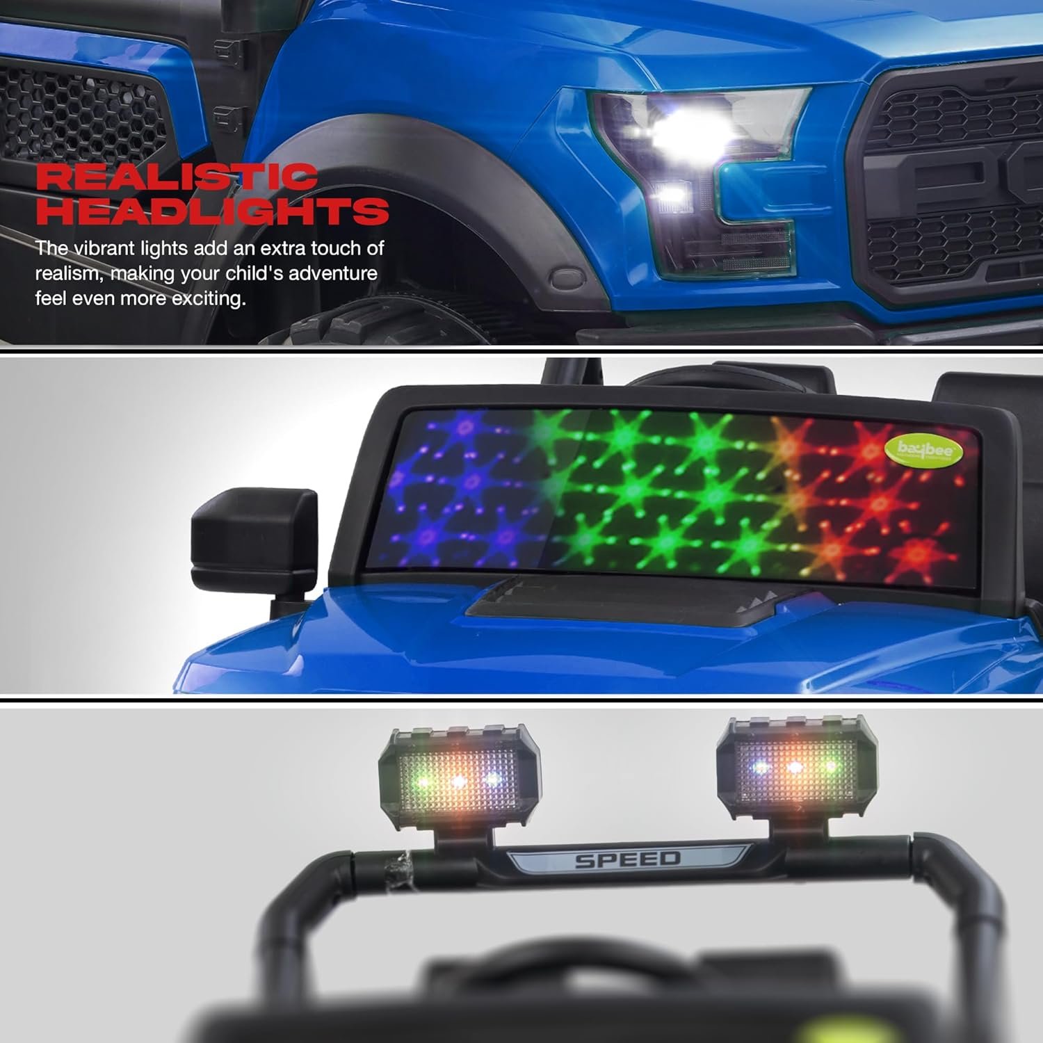 Baybee Bronco Battery Operated Jeep for Kids, Ride on Toy Kid Car with RGB Windshield Light & Music | Electric Jeep Battery Cars | Baby Big Car for Kids to Drive 3 to 8 Years Boys Girls (Blue)