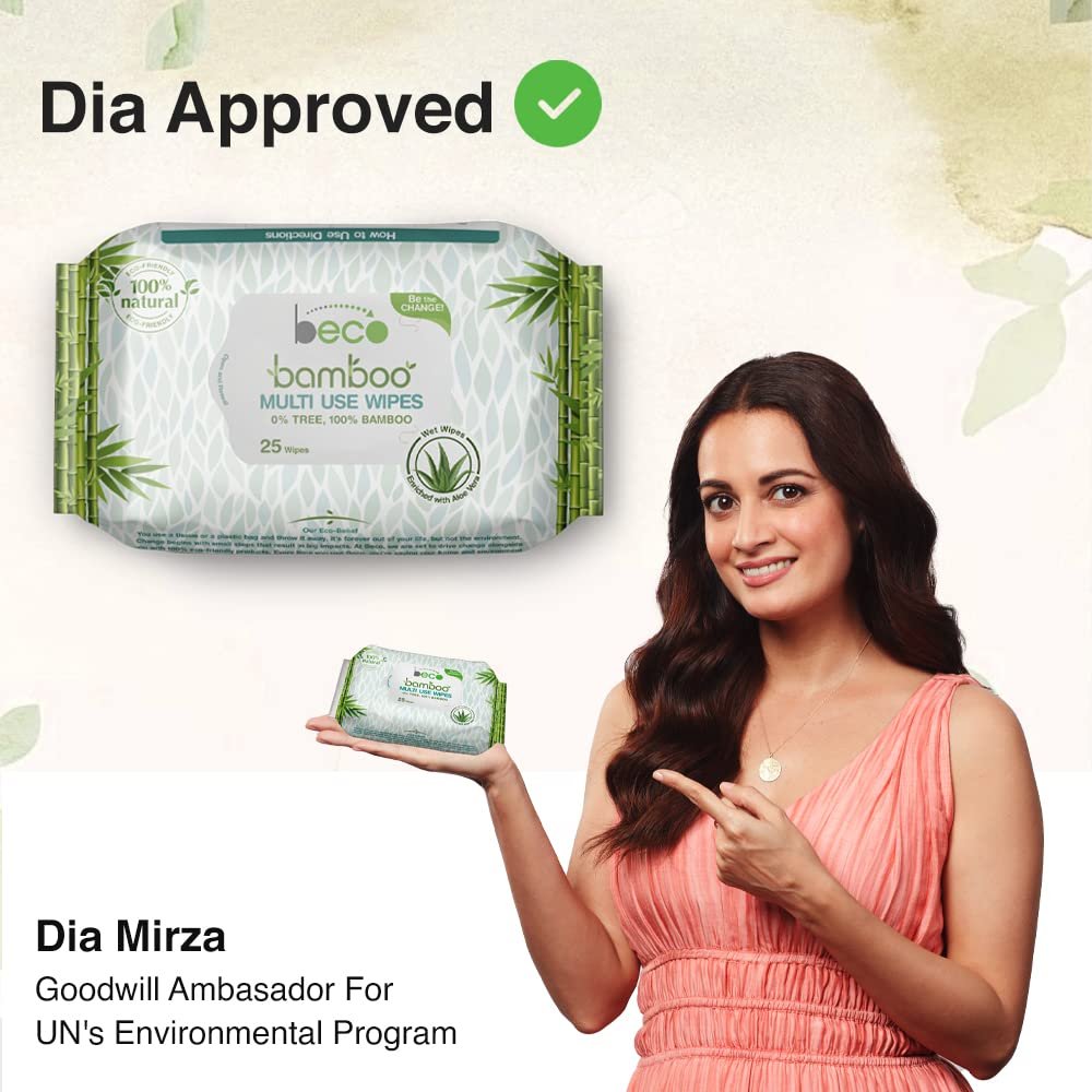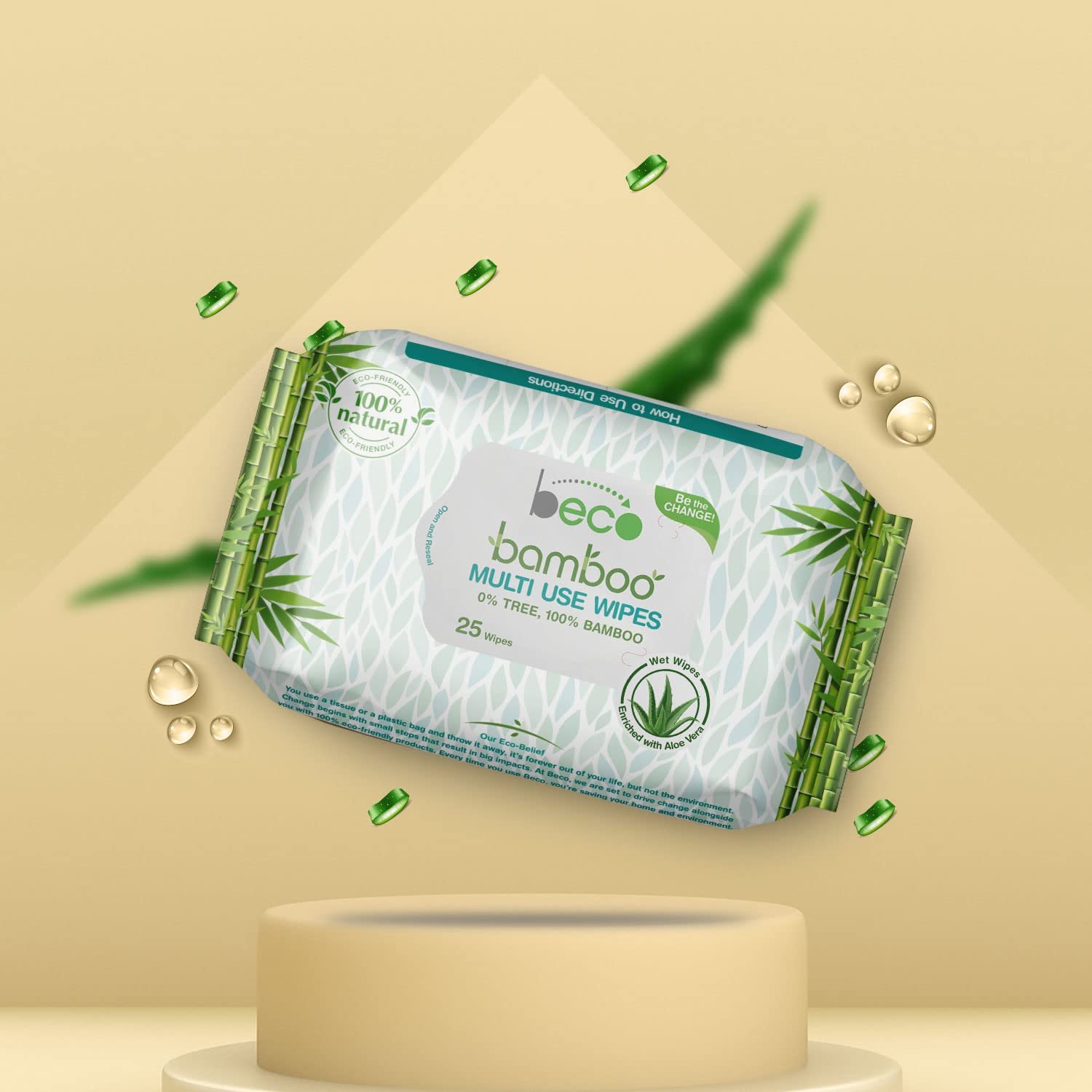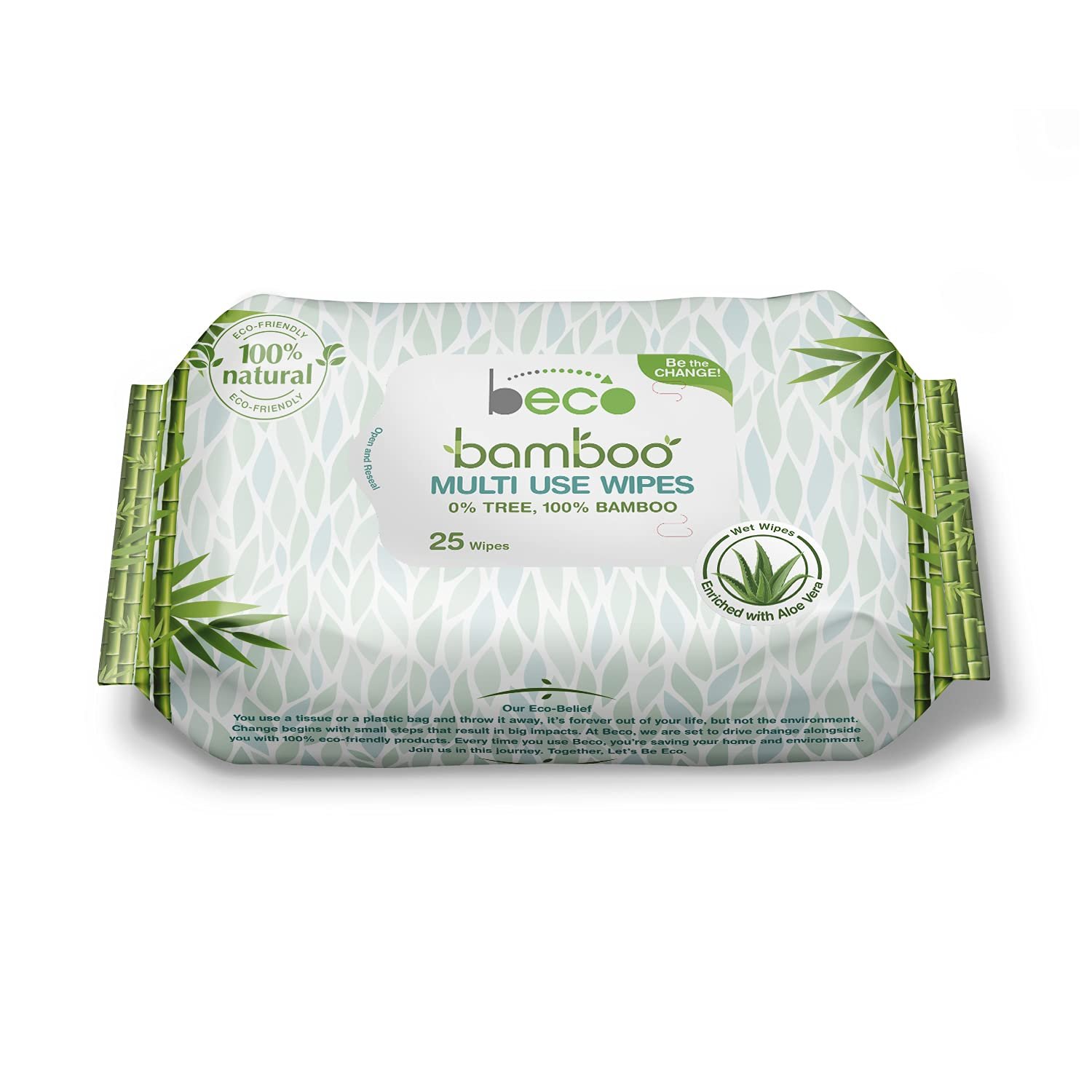 Beco Bamboo Aloe Vera Wet Wipes, 25 Pulls Each, Pack of 1, 100% Natural & Eco-Friendly