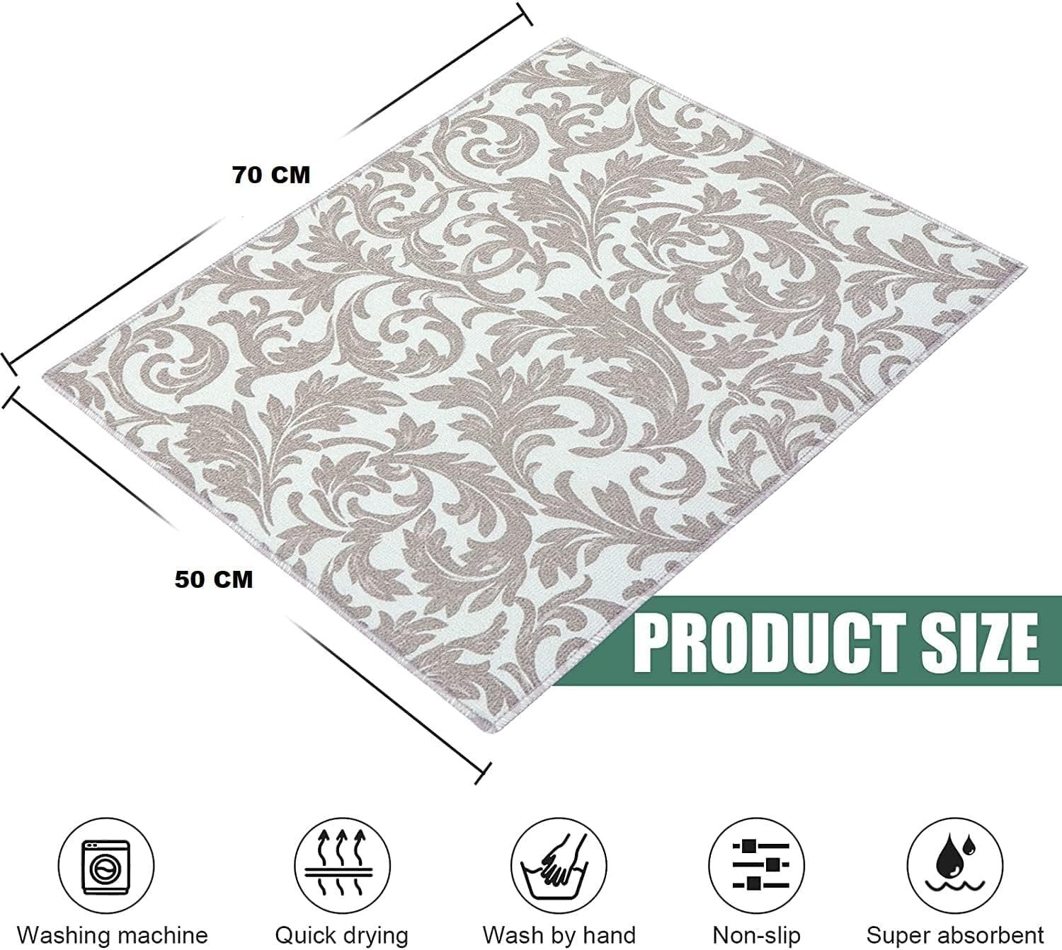 Black Olive New Dish Drying and Kitchen Countertop Mat- Microfiber Utensil Drying Mat for Kitchen, Dish Drying Mat and Protector for Kitchen Countertops, Sinks Extra Large 50 x 70 cm (1 Pc)