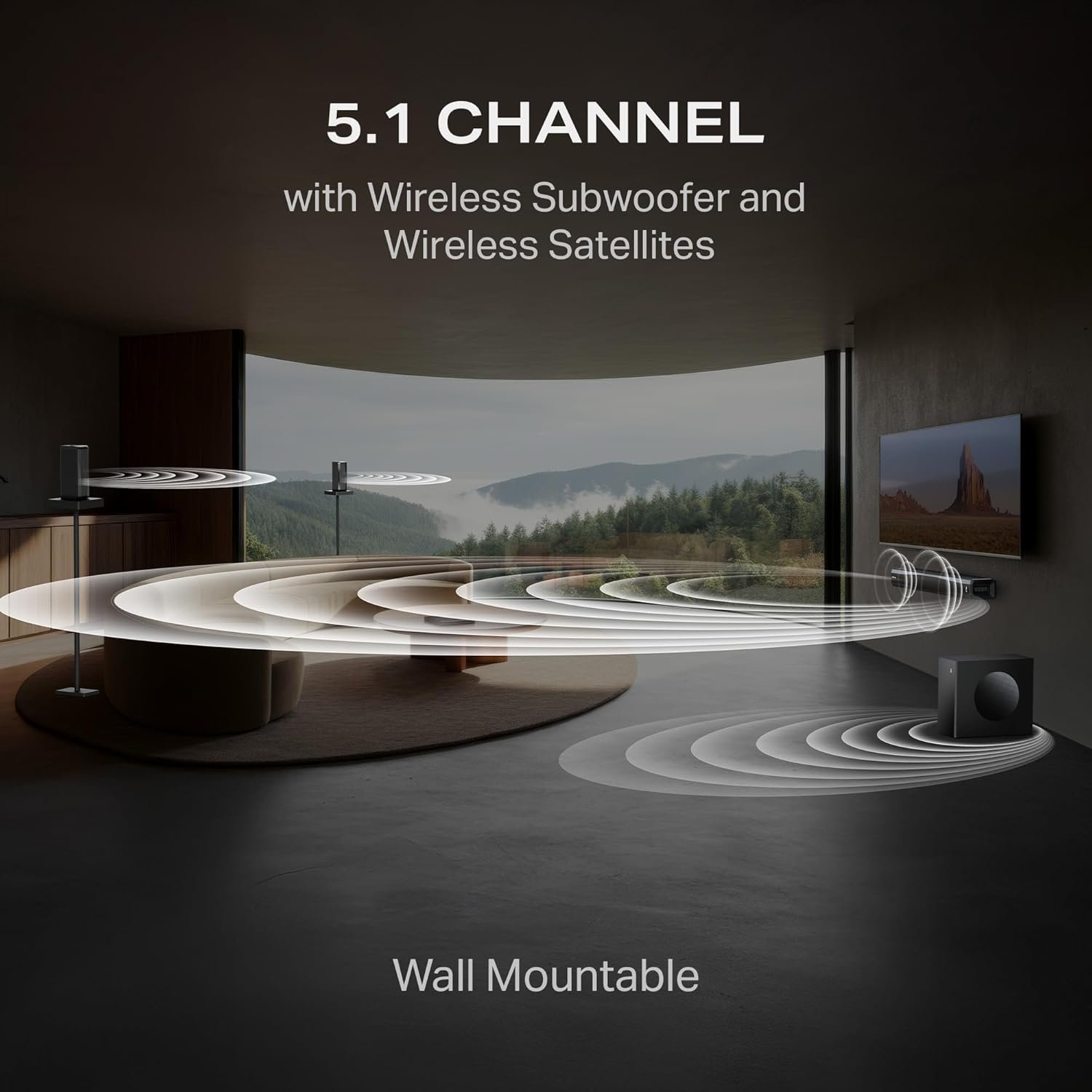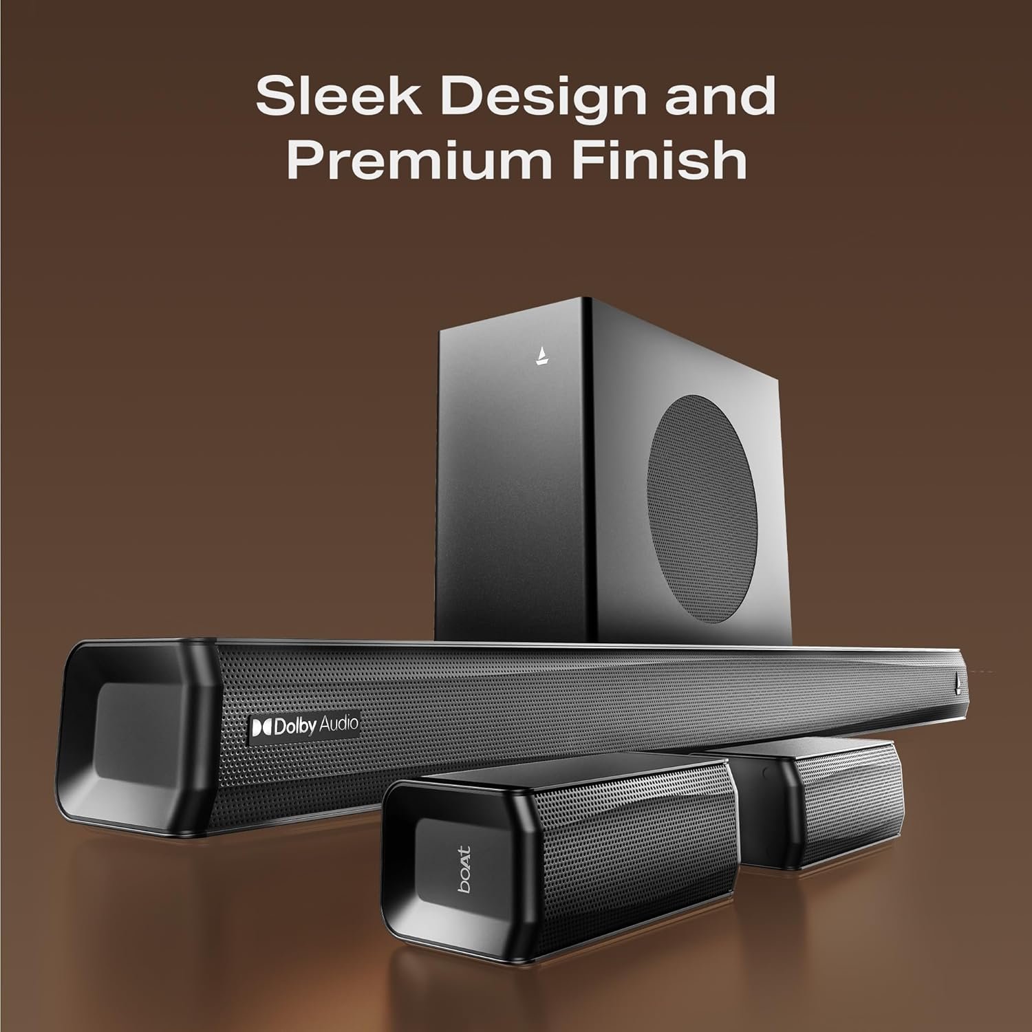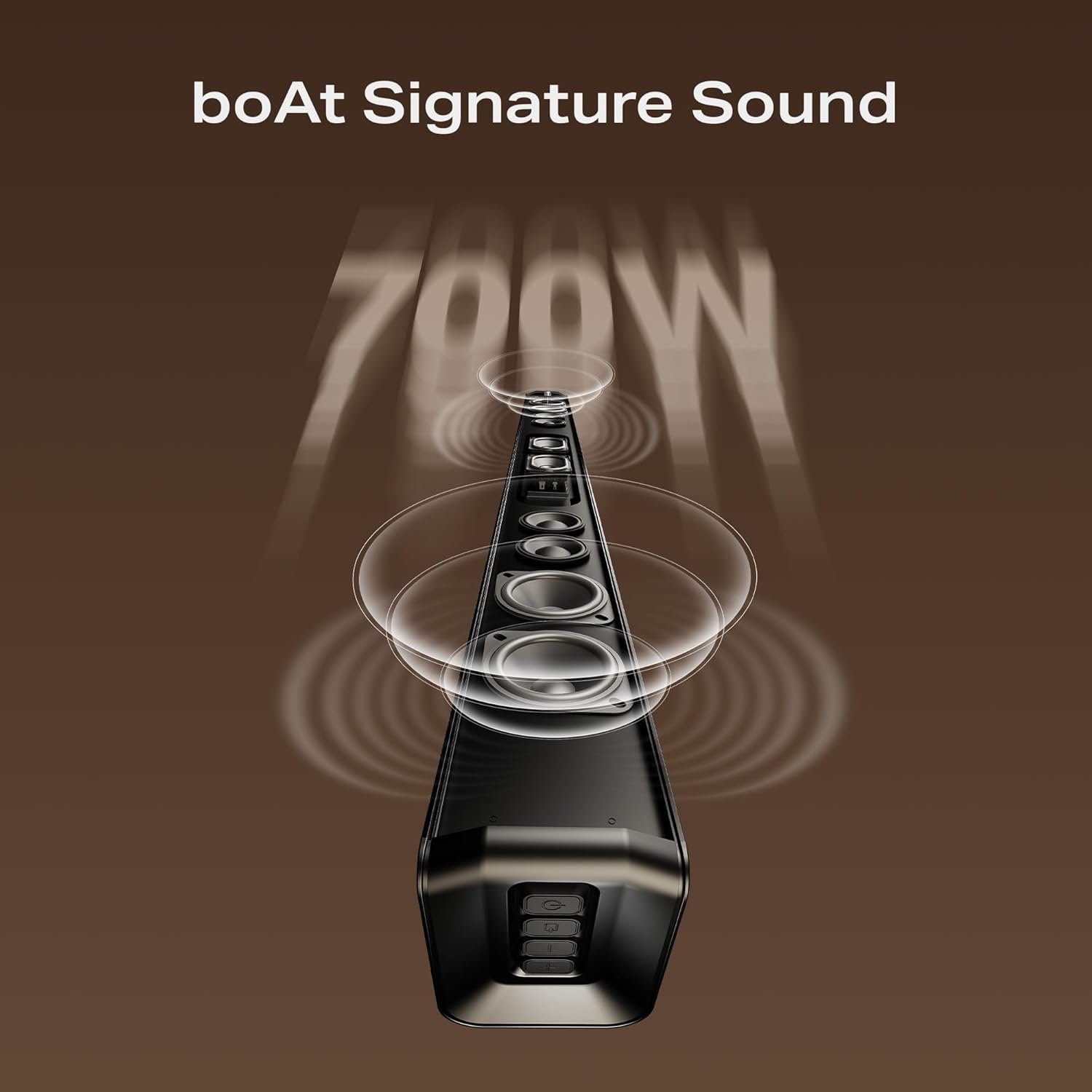 Boat Aavante Prime 5.1 7050D, Dolby Audio, 700W, 5.1CH w/Wireless Subwoofer & Wireless Satellites, Scan QR for Installation, Bluetooth Sound bar, Home Theatre Soundbar Speaker (Premium Black)