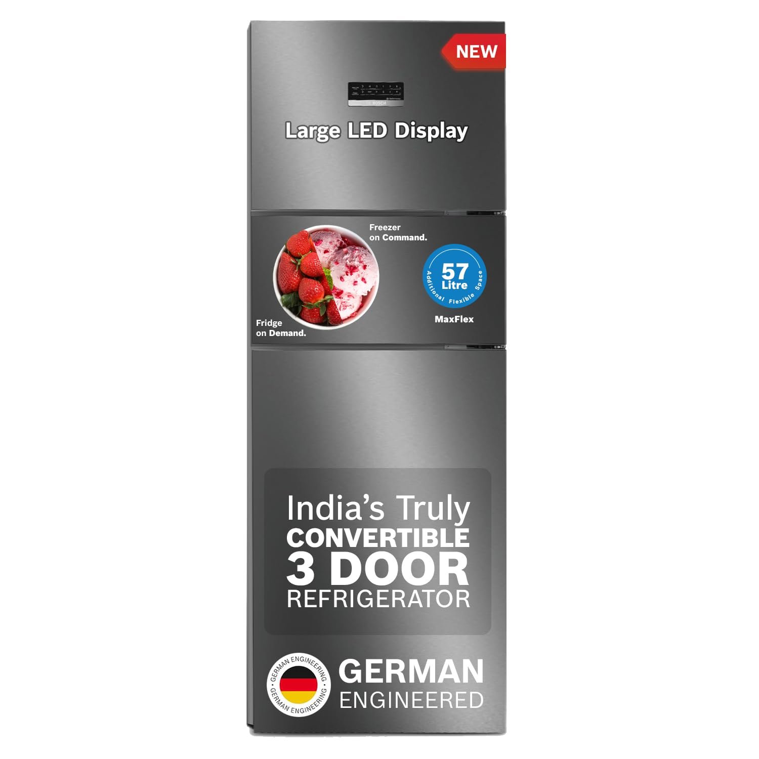 Bosch 335L Max Flex,3 Star,8 in 1 Convertible,Vario Inverter,Frost Free Triple Door Refrigerator,Smoky Silver (CMC36K03NI)Interactive Display|18 Hrs Cooling Retention|Adaptive UI|Vita-Fresh Technology