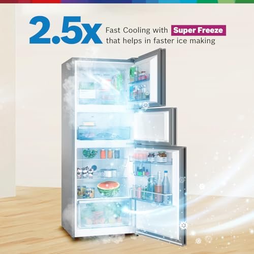 BOSCH MaxFlex Convert 335L, 3 Star Inverter Frost Free Triple Door Refrigerator (2024 Model, CMC36K03NI, 8-in-1 Convertible, UV Protected Body Shield, VitaFresh Technology, Adaptive UI, Smoky Steel)