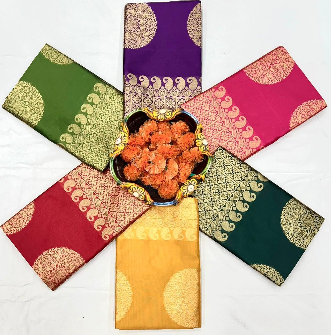 C J Enterprise Women’s Pure Soft Silk Saree With Blouse Piece For Wedding