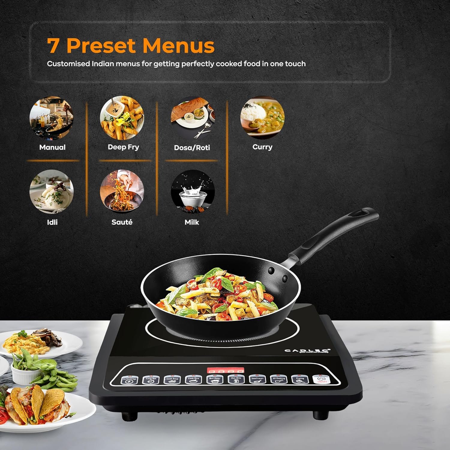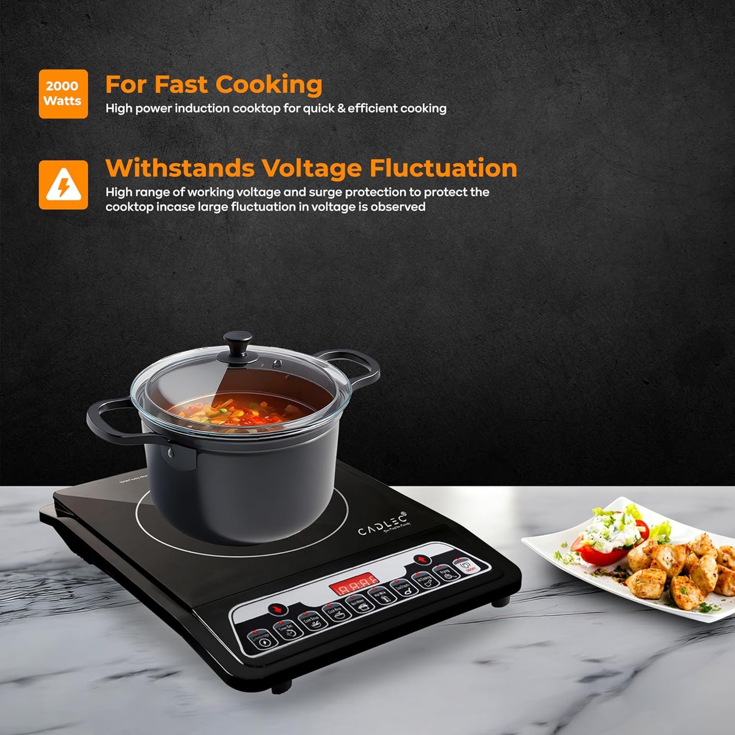 Cadlec CookMate_5 2000W Induction Cooktop | 7 Cooking Modes, Auto Shut-Off, Over-Heat Protection, LED Display, BIS Approved, 2-Year Warranty | Black