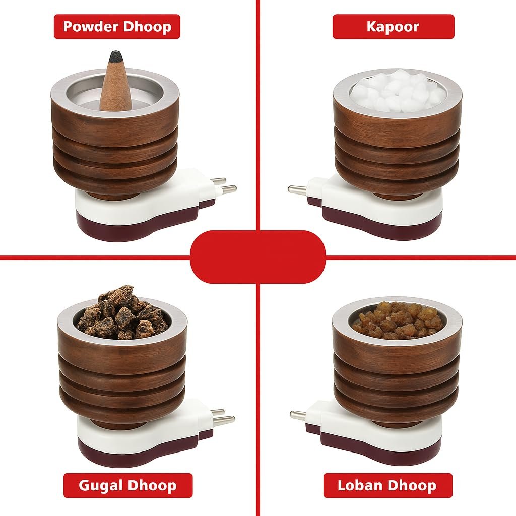 Camphor Burner | Electric Kapoor Dani & Essential Oil Diffuser | Shock Proof Electric Burner for Pooja, Meditation, Havan & Home Fragrance | Wooden Design (Pack of 1)