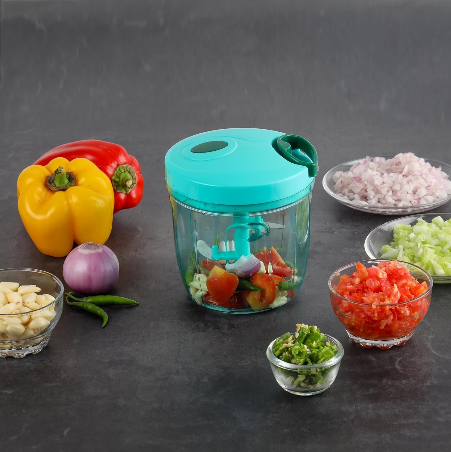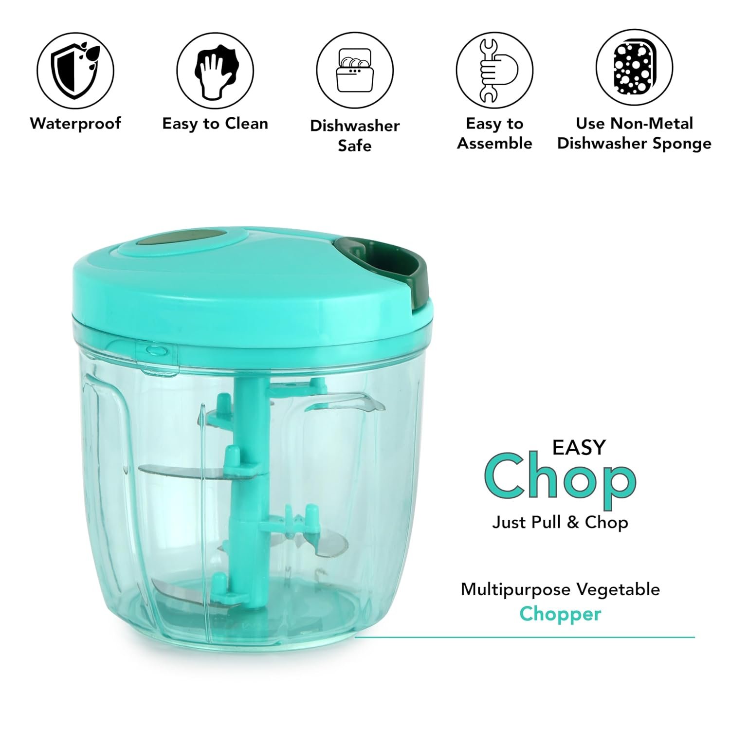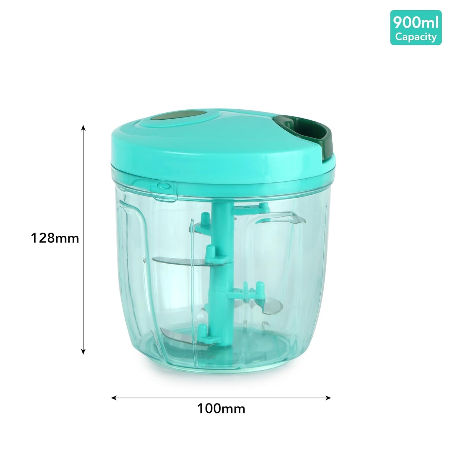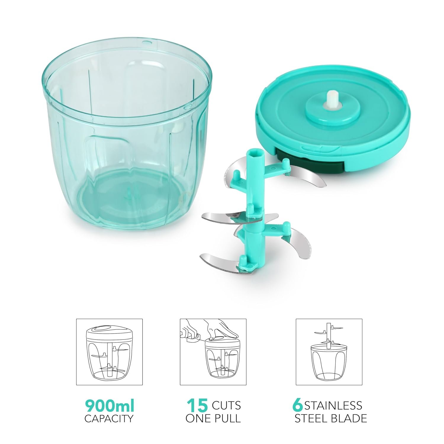 Cello Magic Hand Chopper XL | Multi Utility Chopper | 5 Stainless Steel Blades | Vegetable and Fruits chopper | 15 Cuts One Pull | (Chopper, Blade, Whipper) | 900 ml| Green