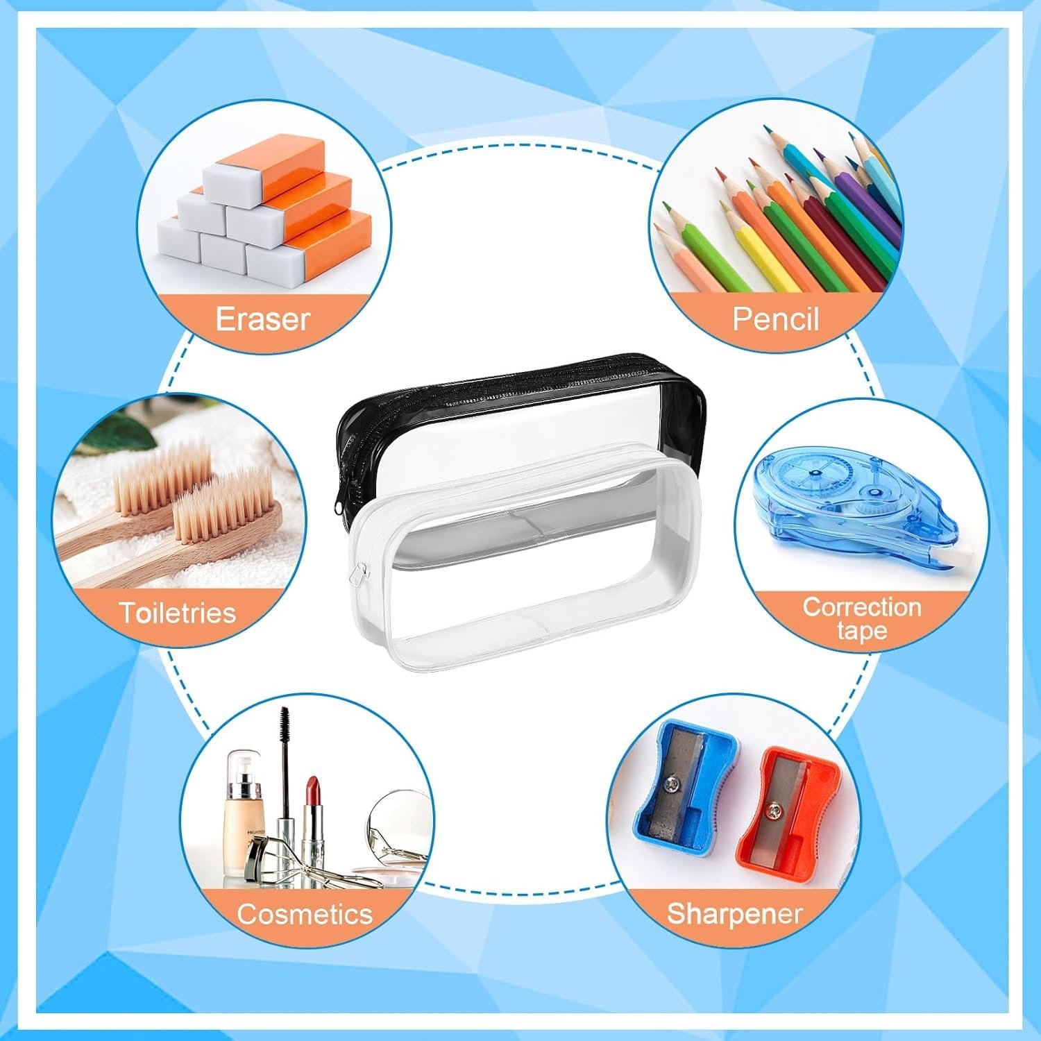 Be the first to review “Clear Pencil Case Set of 2, Transparent PVC Zipper Pouch Black and White, Waterproof Cosmetic Makeup Bag, Portable Stationery Organizer for School Office Travel (20 × 8 × 3 cm)”