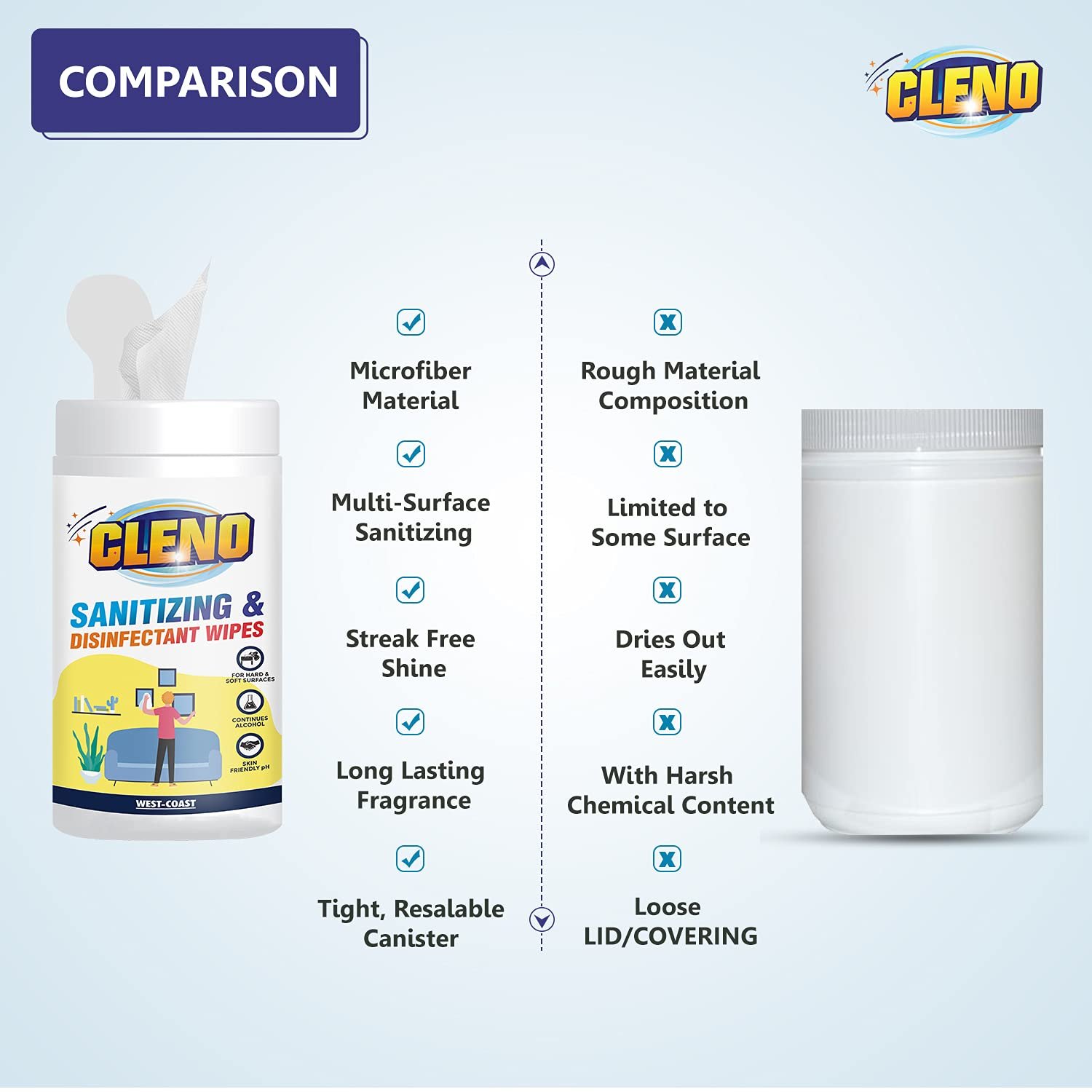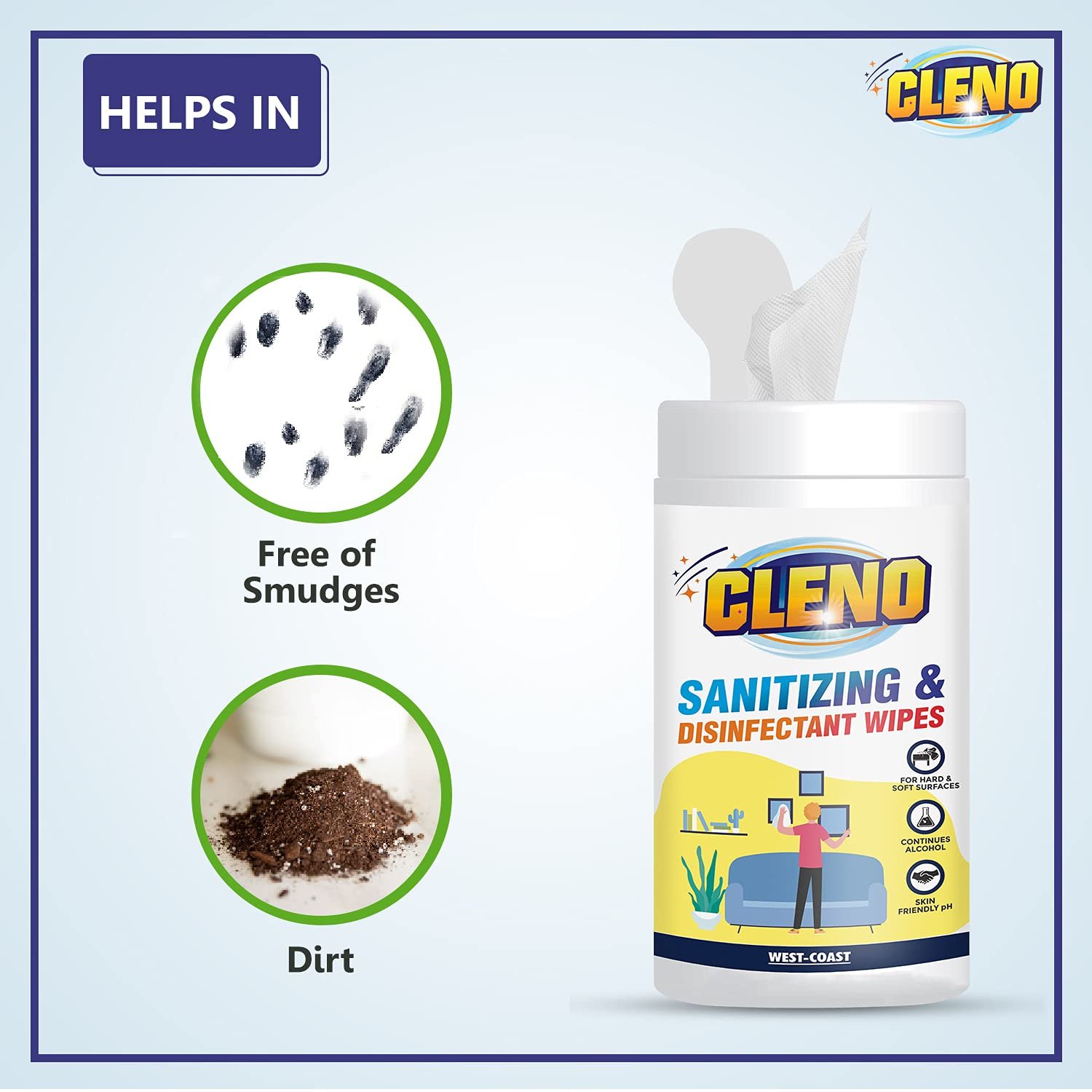 Be the first to review “Cleno Sanitizing & Disinfectant Wet Wipes Cleanse Floor, Frame, Furniture, Shelves, Table & Chair for Stain & Dirt’s Household Area, Lemon – 50 Wipes (Ready to Use)”