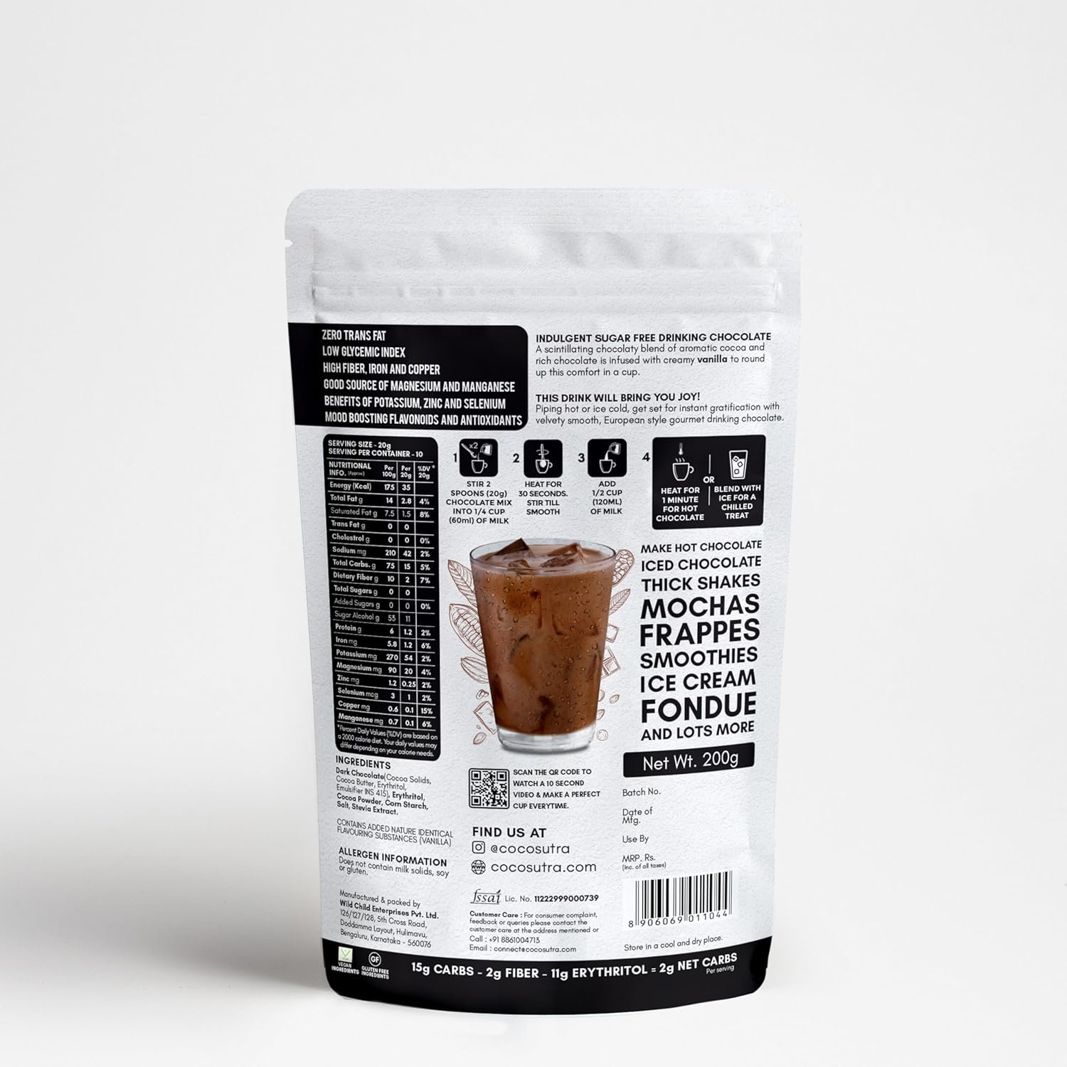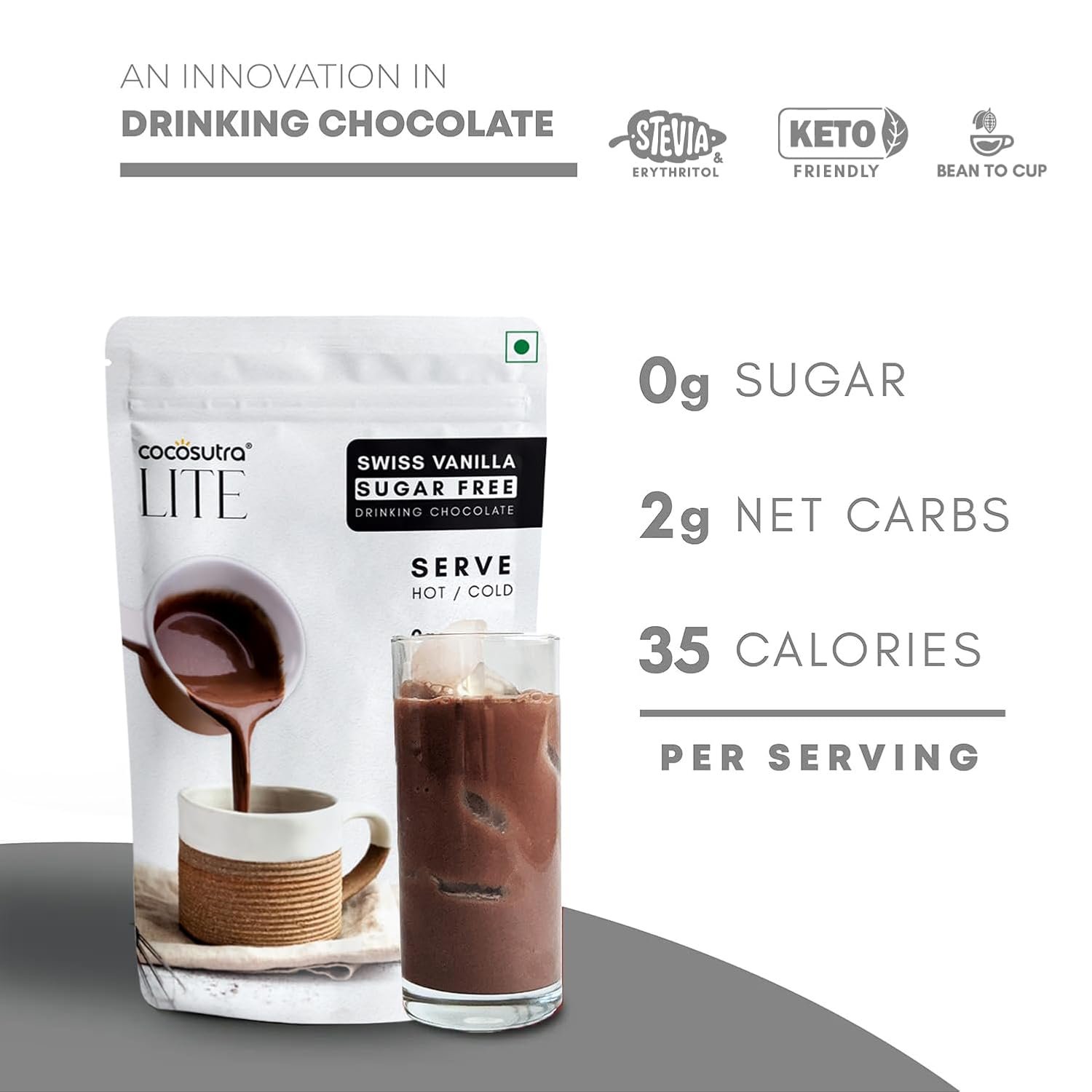 COCOSUTRA Sugar-Free Swiss Vanilla Drinking Chocolate Mix | 200g | Zero Sugar, Low Carb, Keto-Friendly, Vegan | Stevia & Erythritol Sweetened | Serve hot & cold | 10 cups