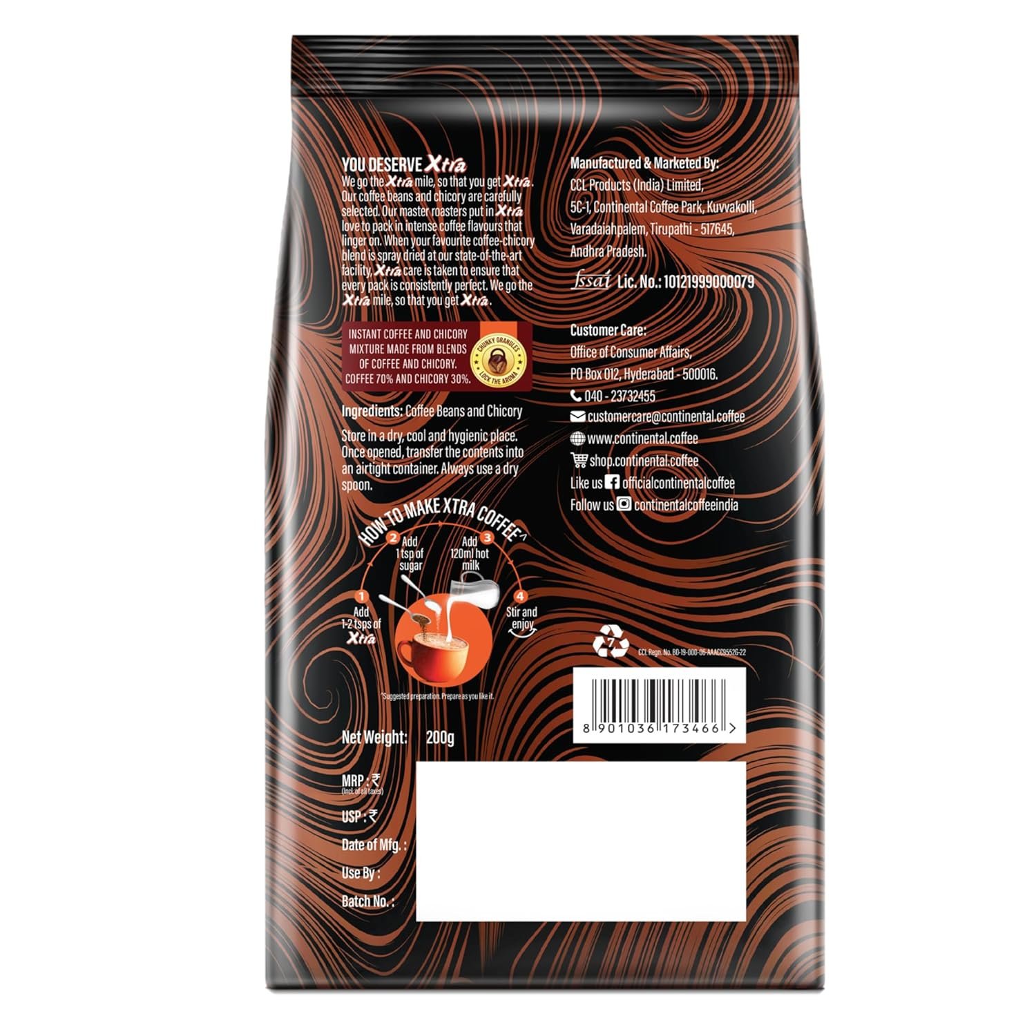 Continental Coffee Xtra Instant Coffee Powder | 200g Pouch | ‎70% Coffee 30% Chicory | South Blend Instant Coffee | Medium Roast | Premium Blend of Arabica & Robusta | Rich Aromatic Coffee