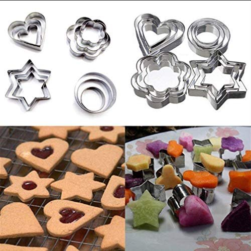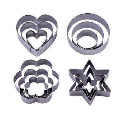Cookie Cutters Shapes 12 pcs Heart,Flower,Star,Round Biscuit Cutter Set Omelette Fruit Pancake Shaper,Steel