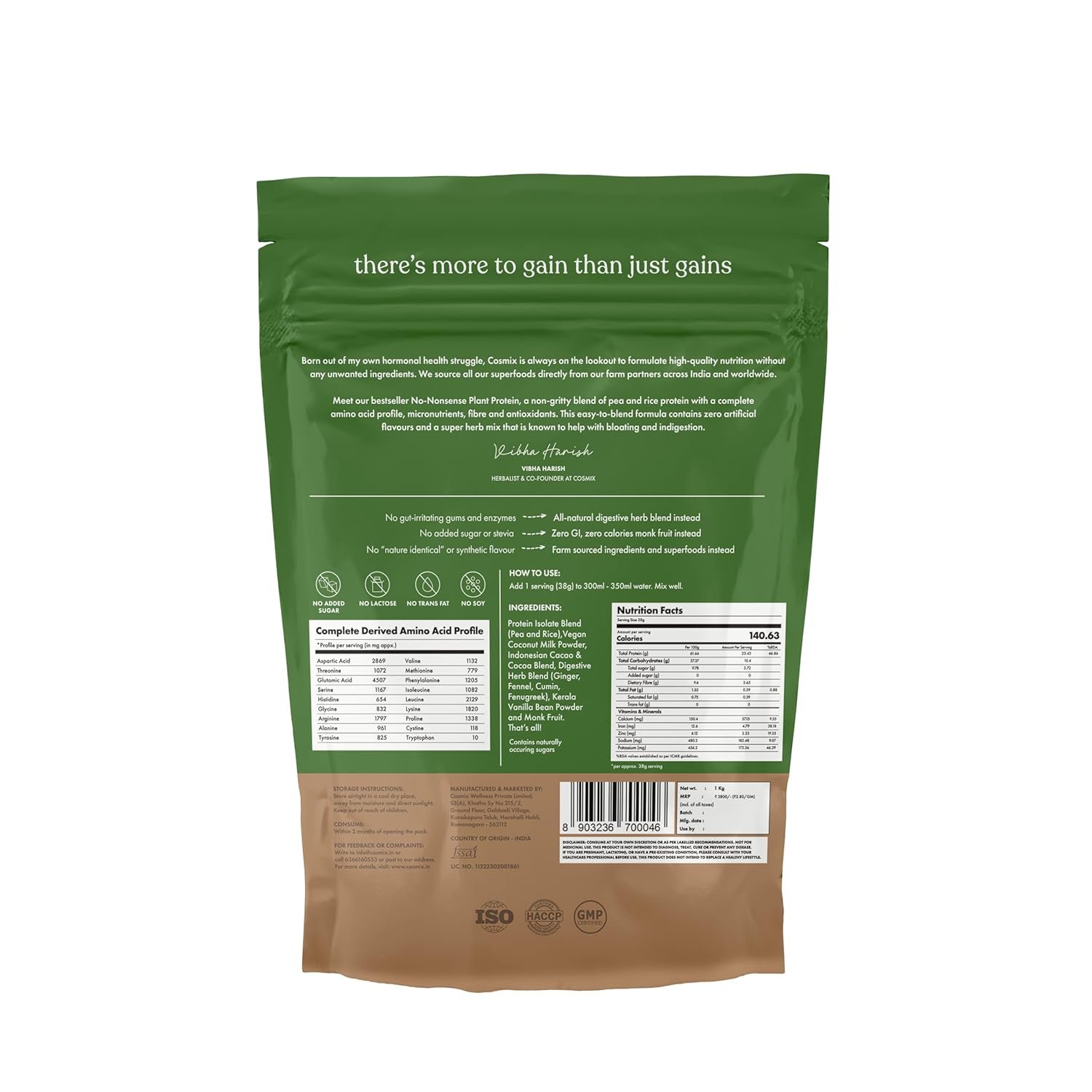 Cosmix No-Nonsense Plant Protein | 24 Protein/Serve, 1Kg Pouch | Indonesian Cacao (Chocolate) | Plant Based Protein, Pea & Rice Isolate | Clean, Easy to Digest | All Essential Amino Acids