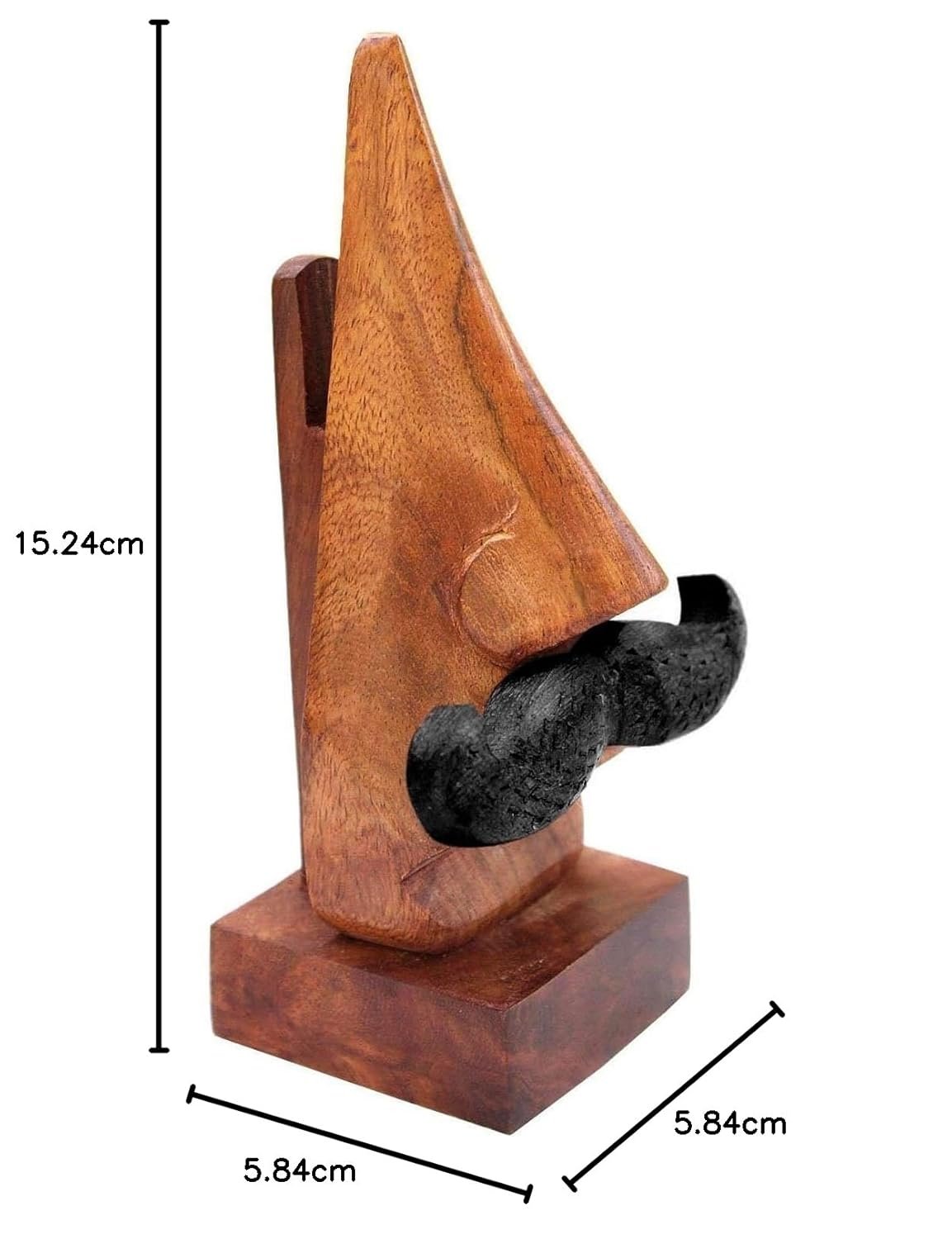 Craftland Rosewood Wooden Brown Handcrafted Nose Shaped Goggle Spectacle/Specs Eyeglass Holder Stand with Black Moustache (Black Moutche n Red Lips)