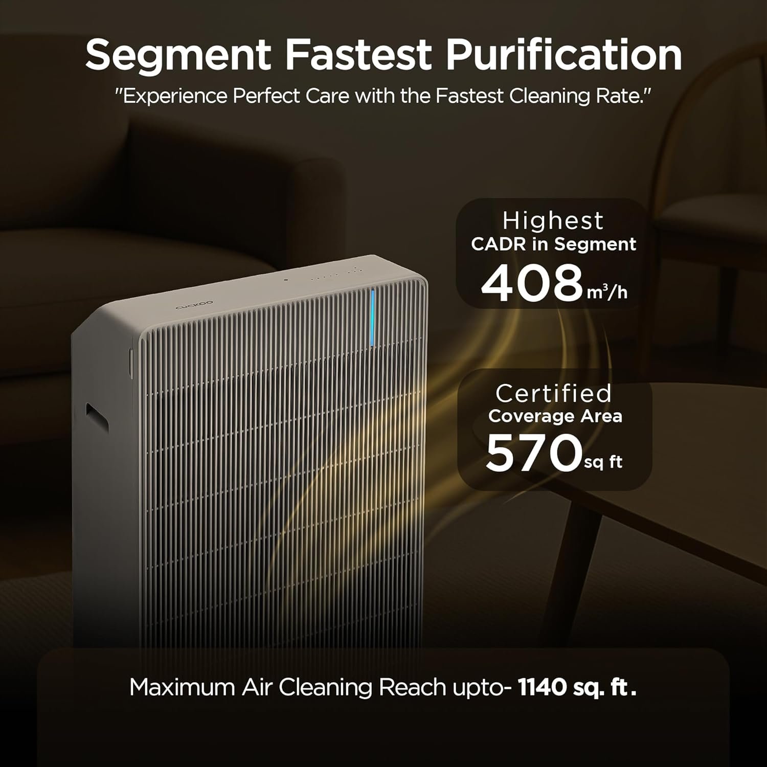 CUCKOO Respure Copper Air Purifier For Home | 2 Yrs Filter & 8 Yrs Warranty on Motor | Biggest True HEPA Copper Filter | Coverage Area 570 Sqft | Suitable For Heavy Pollution Allergies & Pet Issues.