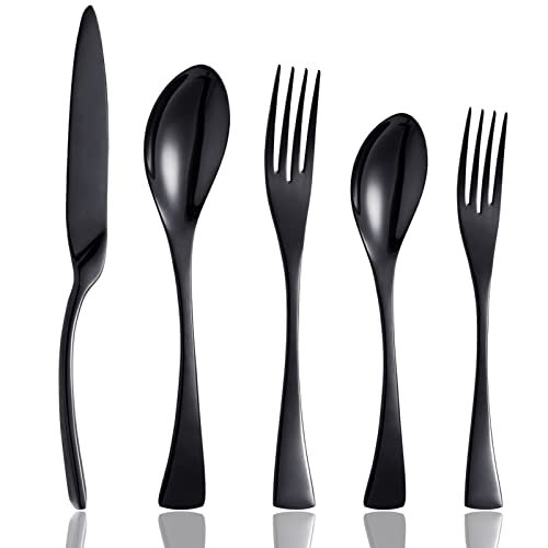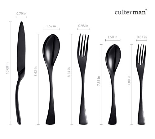 Culterman 20 Piece Flatware Silverware Cutlery Sets, unique modern look, Home & Kitchen Stainless Steel Dinnerware/Tableware/Utensils Sets For 4, Include Knives/Forks/Spoons, Dishwasher Safe (Black,4)