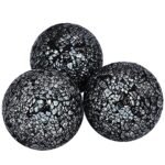 Decorative Orbs Set of 3 Glass Mosaic Sphere Balls Diameter 3.15″ for Bowls, Vases and Dining Table Centerpieces (Black)